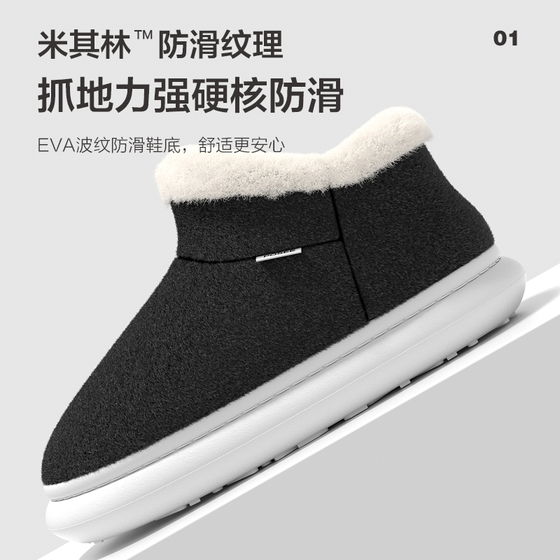 朴西秋冬季新款男士高帮棉拖鞋家居室内加绒保暖情侣简约棉鞋女士
