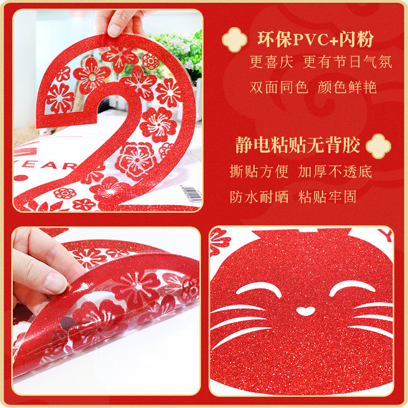 新年窗贴小贴画玻璃贴纸静电贴过年装饰窗花2026新款马年春节布置