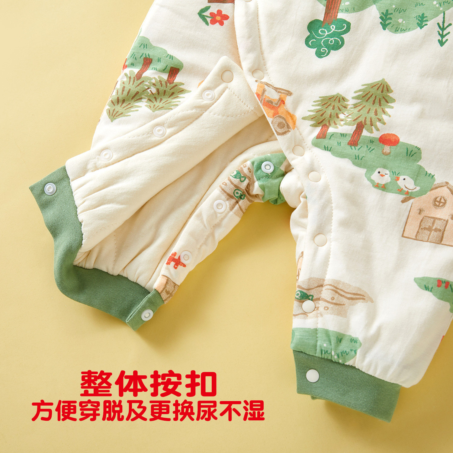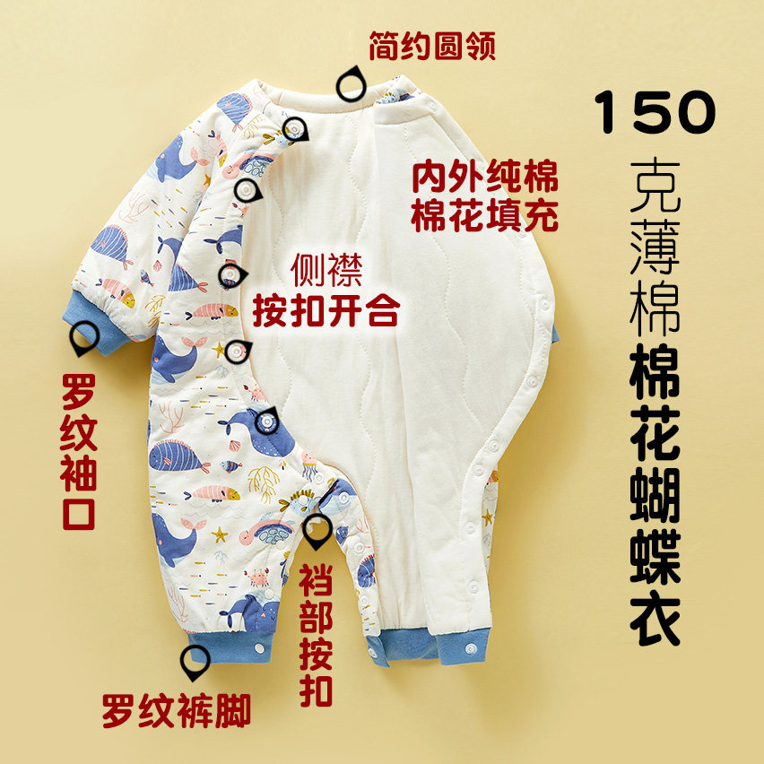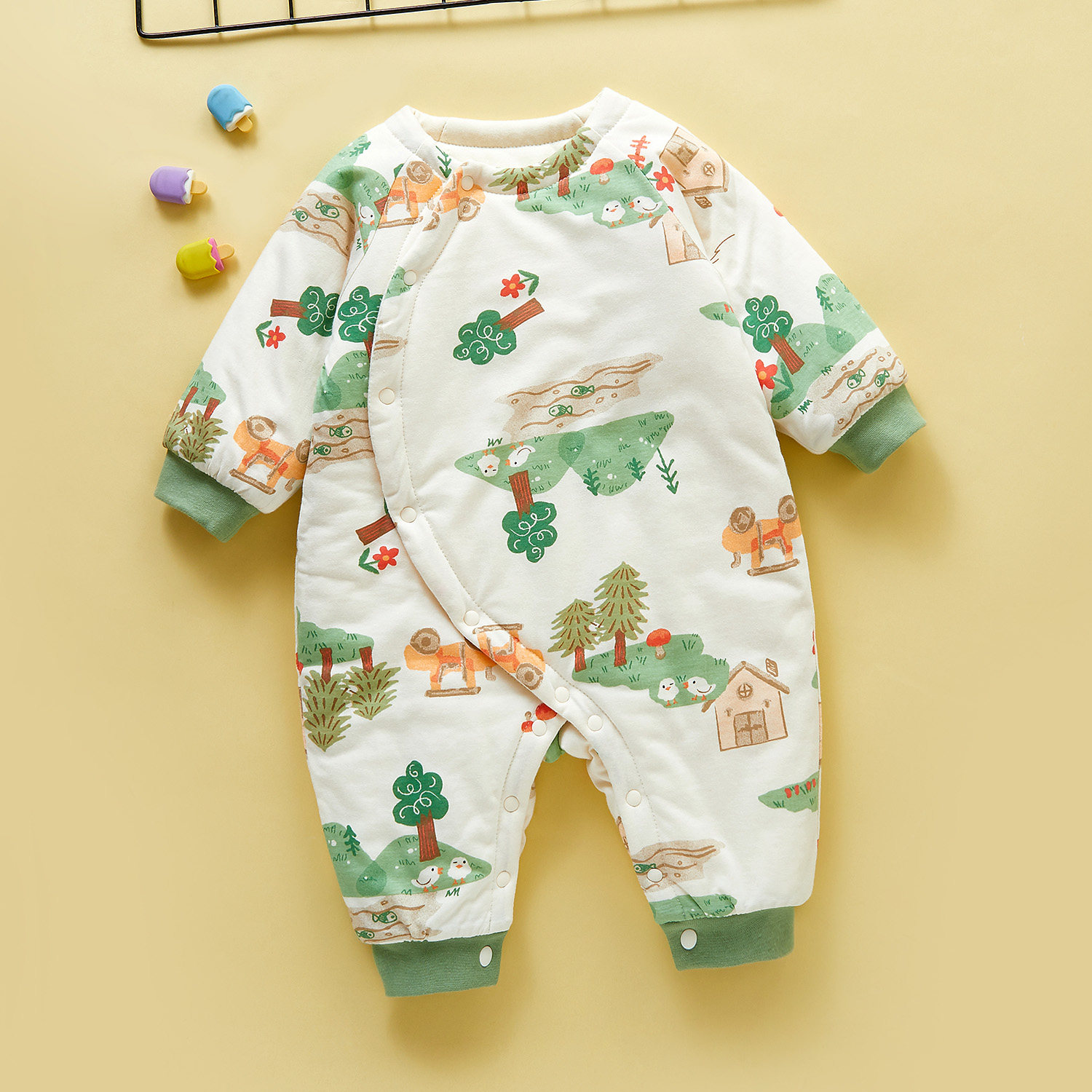 婴儿秋冬纯棉花侧开连体哈衣棉服