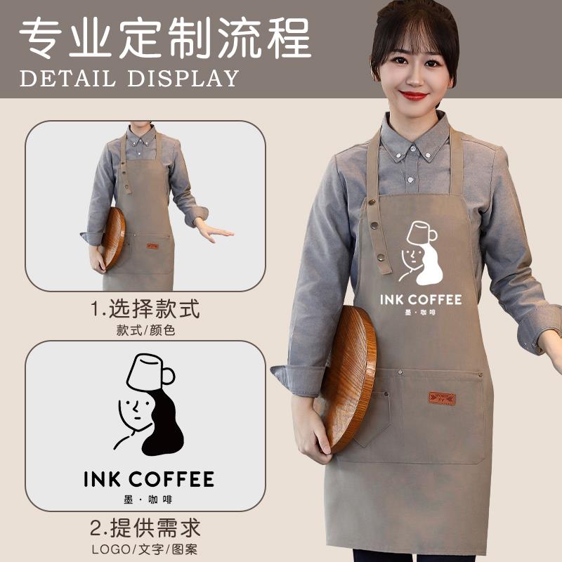 德国帆布围裙工作服定制logo印字餐饮专用奶茶咖啡店服务员围腰女