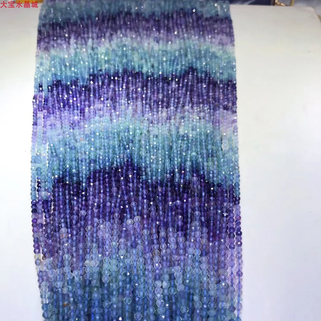 2MM 3MM 4MM天然渐变色蓝紫萤石 足球面切角圆珠水晶散珠半成品珠