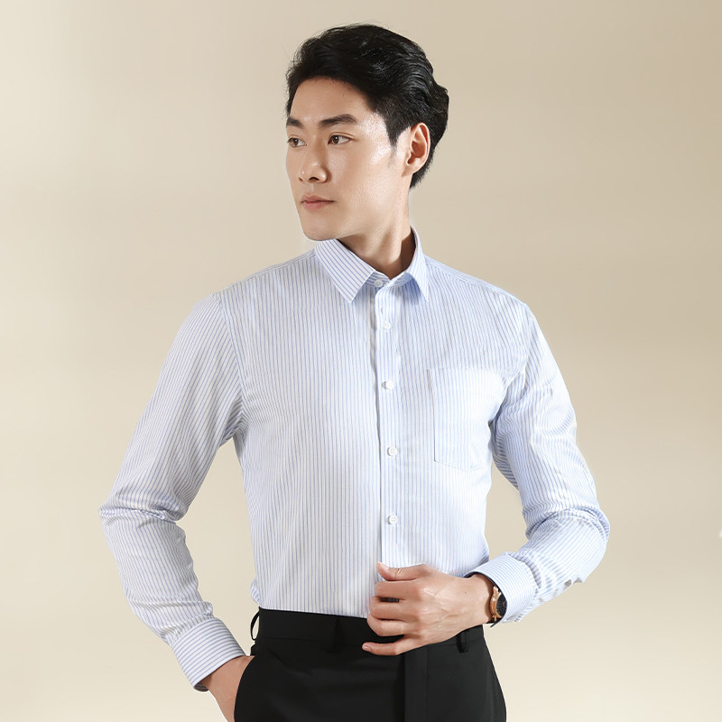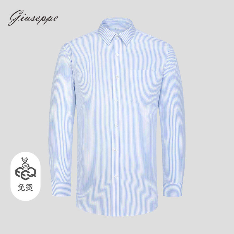【商场同款+免烫】乔治白春秋长袖衬衫商务工作条纹口袋衬衣男