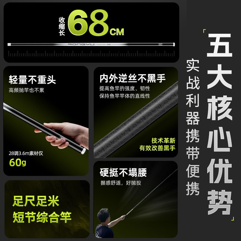 黑白款短节鱼竿溪流竿手竿超轻超硬鱼杆鲫鱼竿手杆长空短杆钓鱼竿