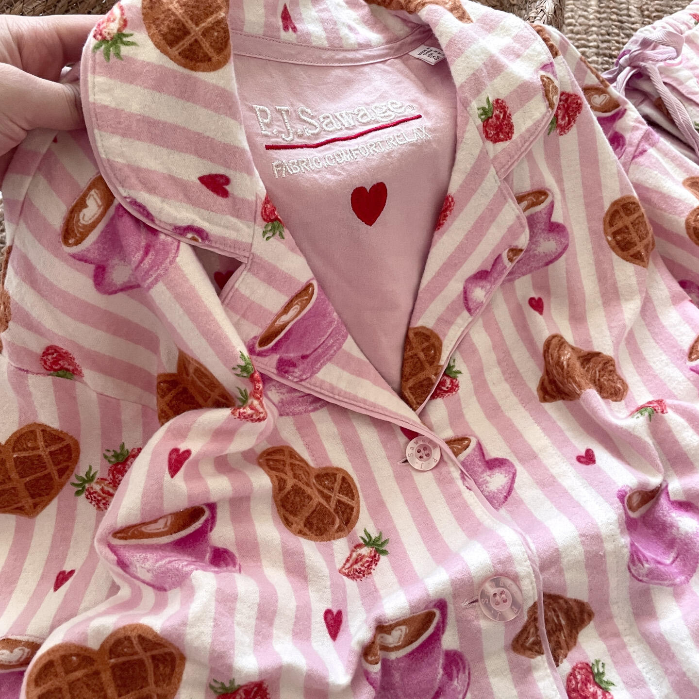 侘町2025年春秋季新款草莓咖啡休闲长袖磨毛睡衣可外穿家居服套装