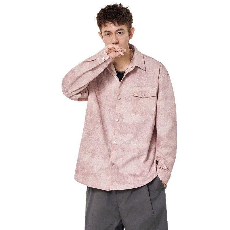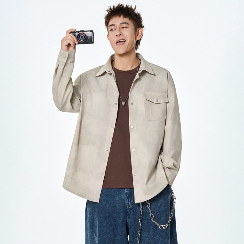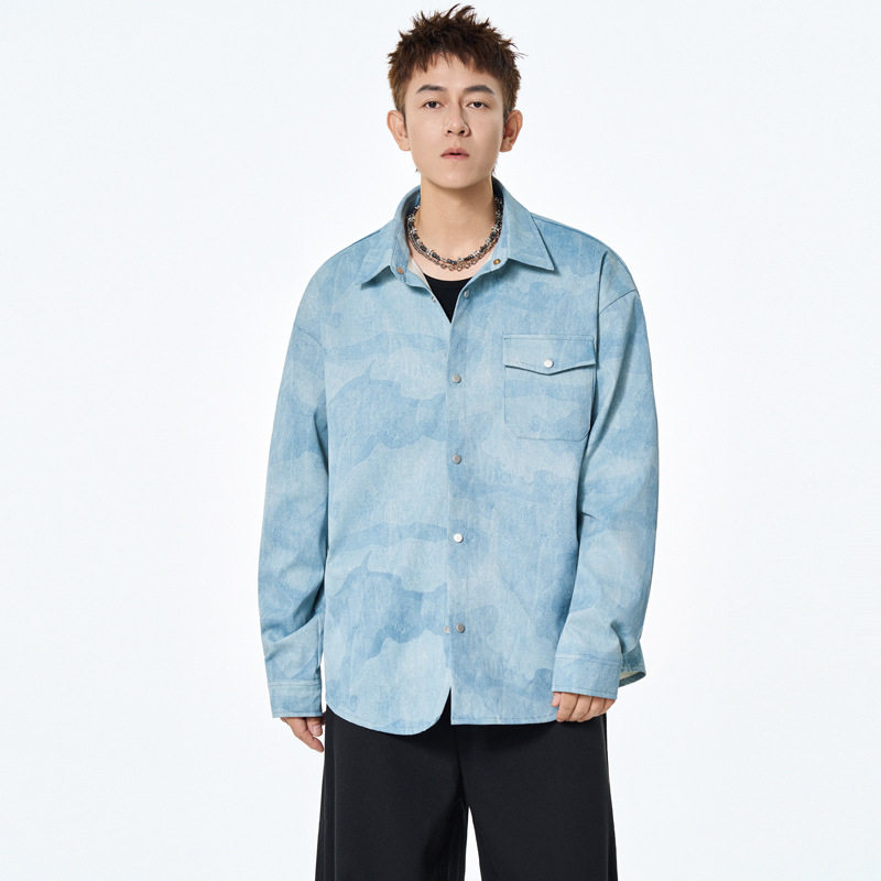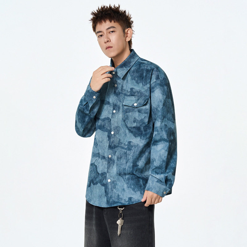 美式工装长袖衬衫男士春秋季新款复古扎染潮流男生衬衣薄外套
