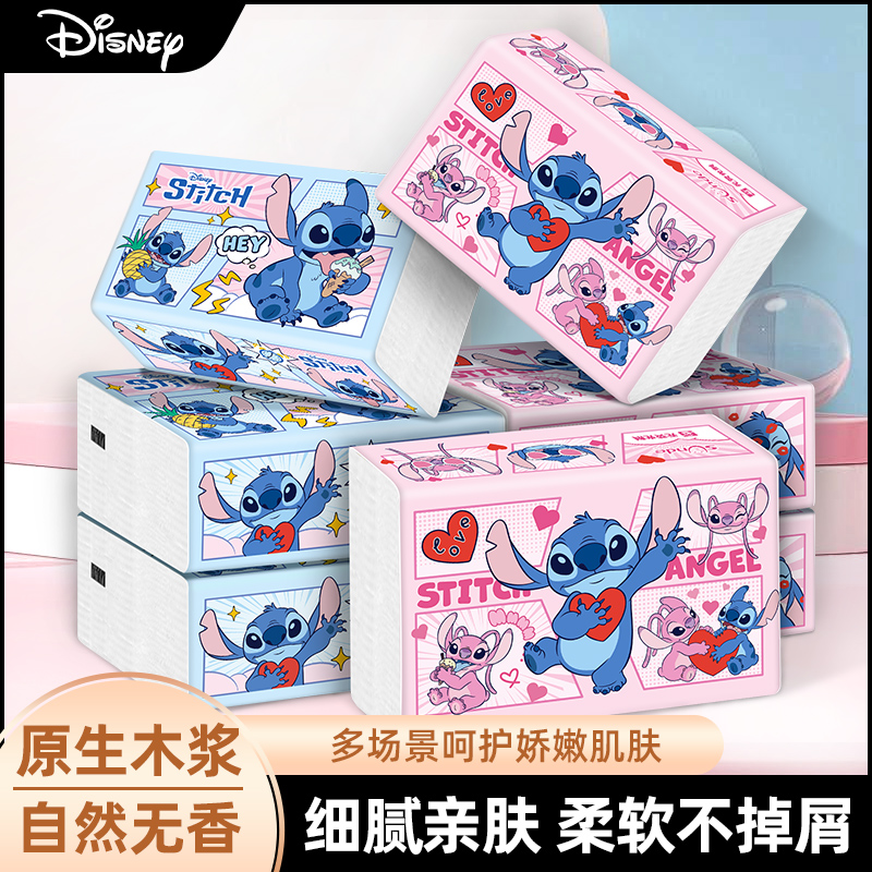 sunde迪士尼史迪仔抽纸大包卫生纸5层家用纸巾加厚可湿水纸抽整箱