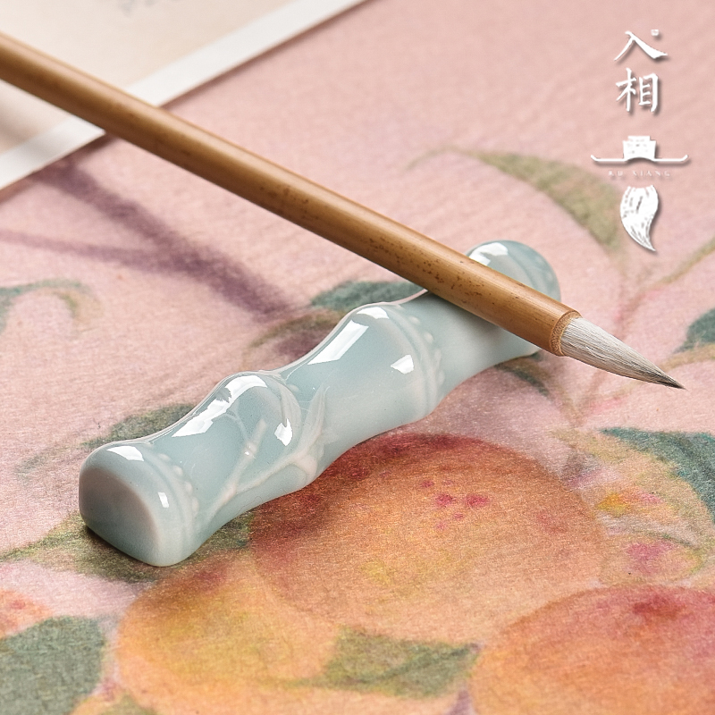 入相文房节节高笔山青瓷瓷器陶瓷笔搁竹节方笔山汝窑弟粉弟梅文房四宝文房桌案摆件新中式毛笔架