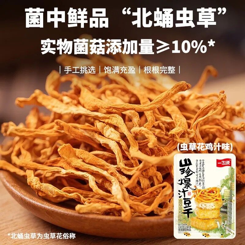 一生缘山珍爆汁豆干鹿茸菇虫草花散称休闲解馋小零食夜宵充饥