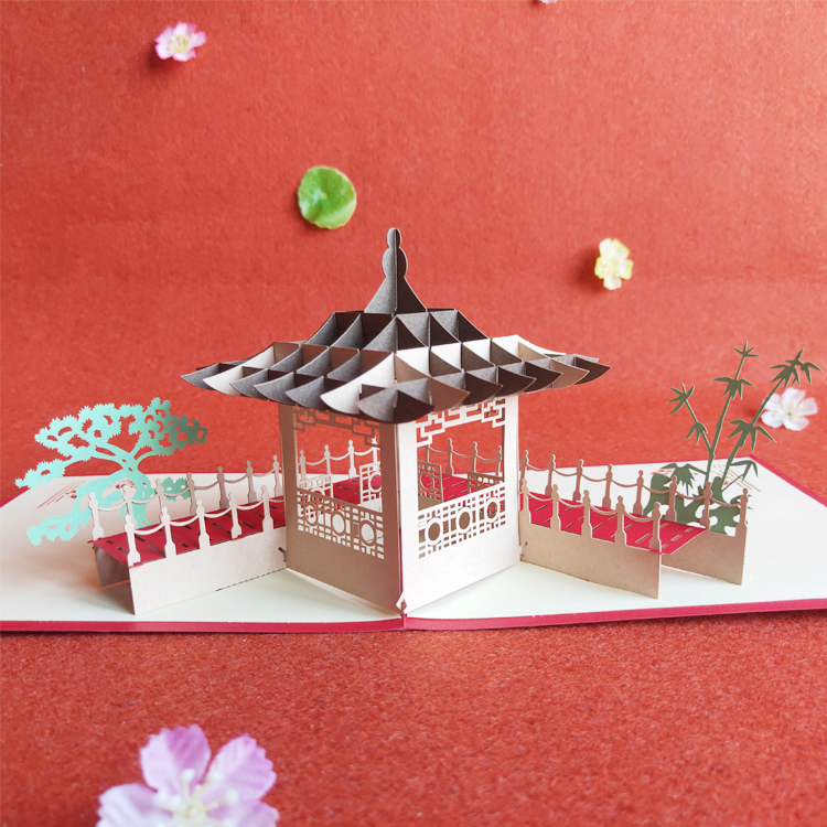 定制3d立体贺卡苏州园林中国风创意手工diy镂空纸雕礼品小卡片