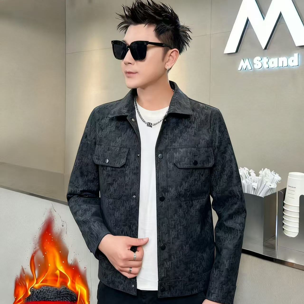 美式休闲痞帅pu皮夹克男士