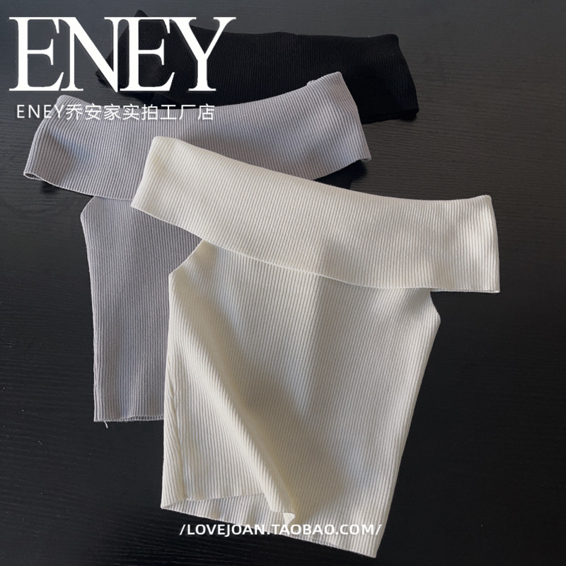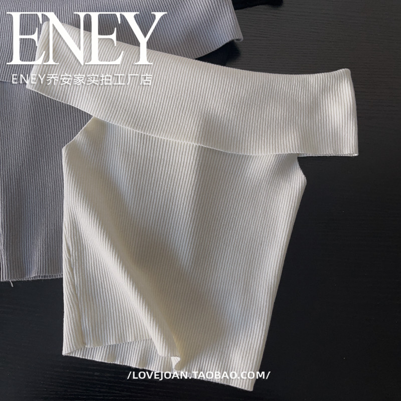 法式一字肩冰丝针织短袖女夏季新款设计感小众修身辣妹短款上衣潮