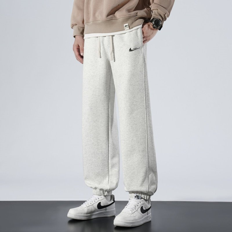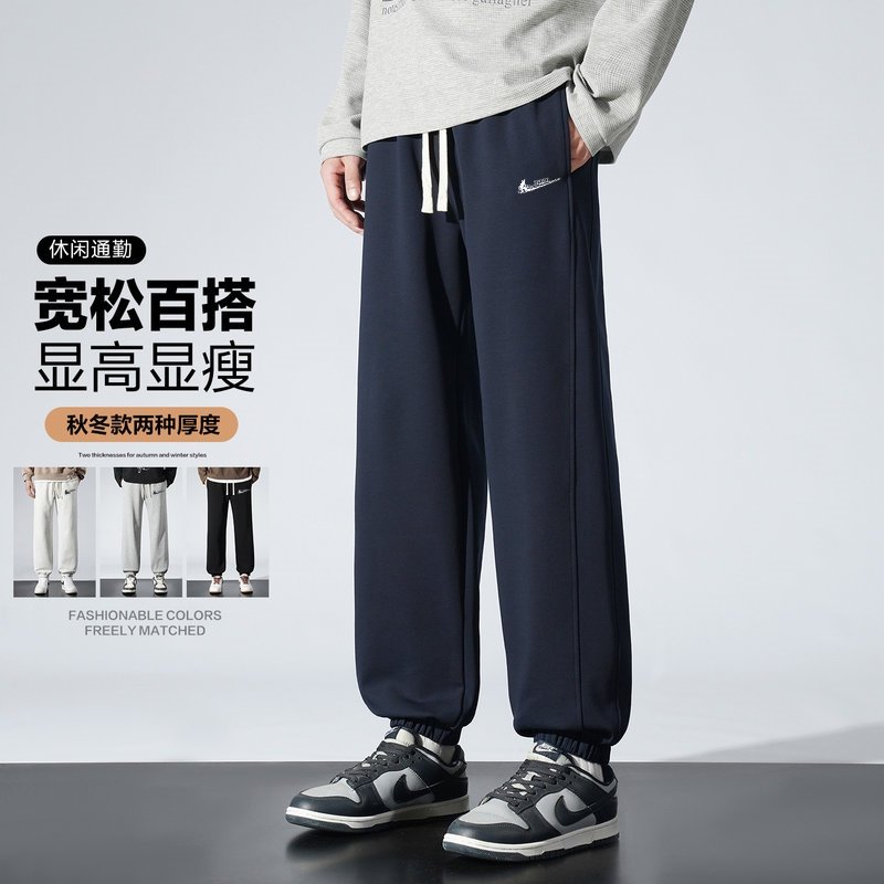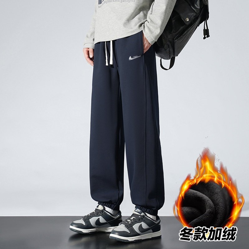 耐克顿加绒卫裤男士秋冬季宽松休闲束脚裤纯色百搭显高显廋长裤子