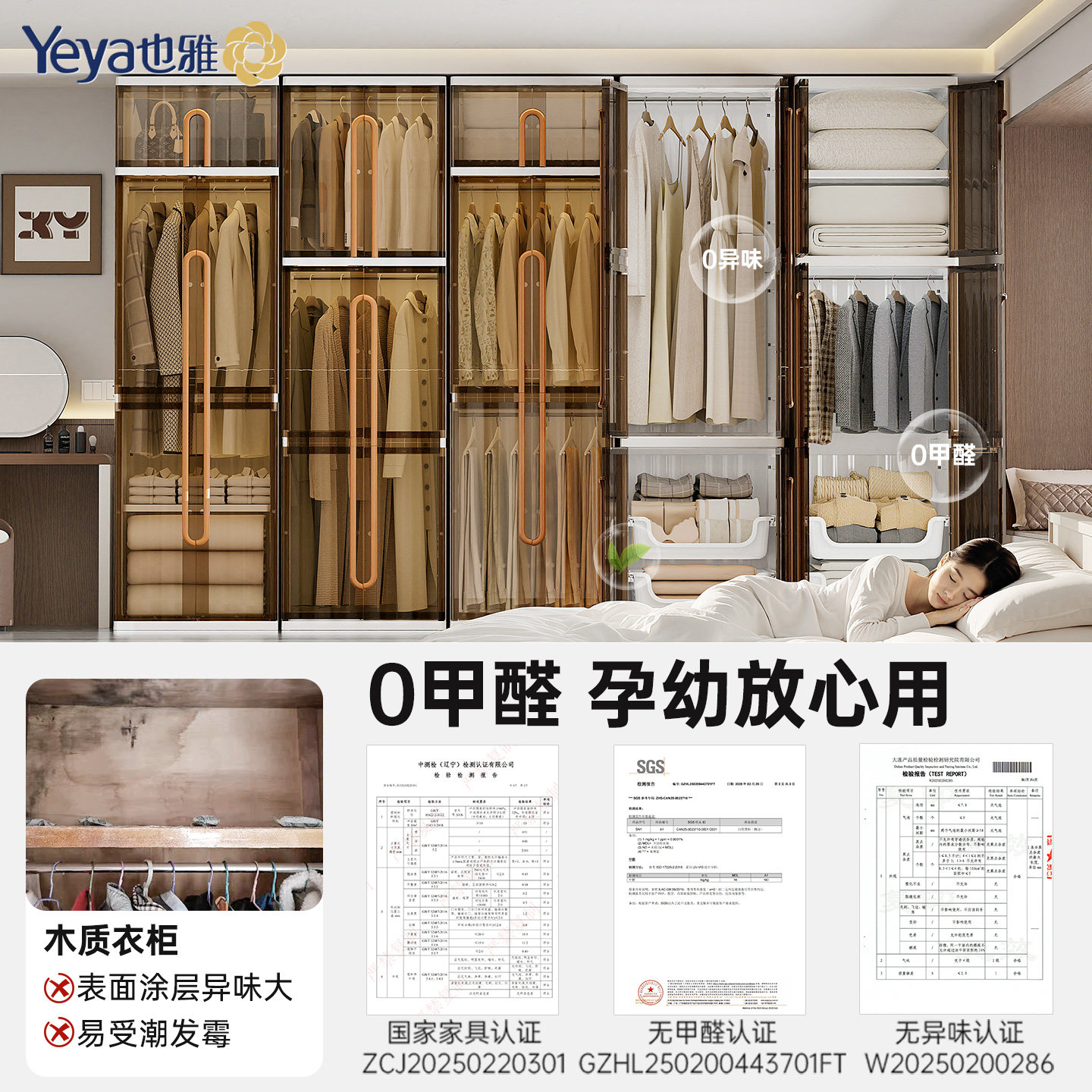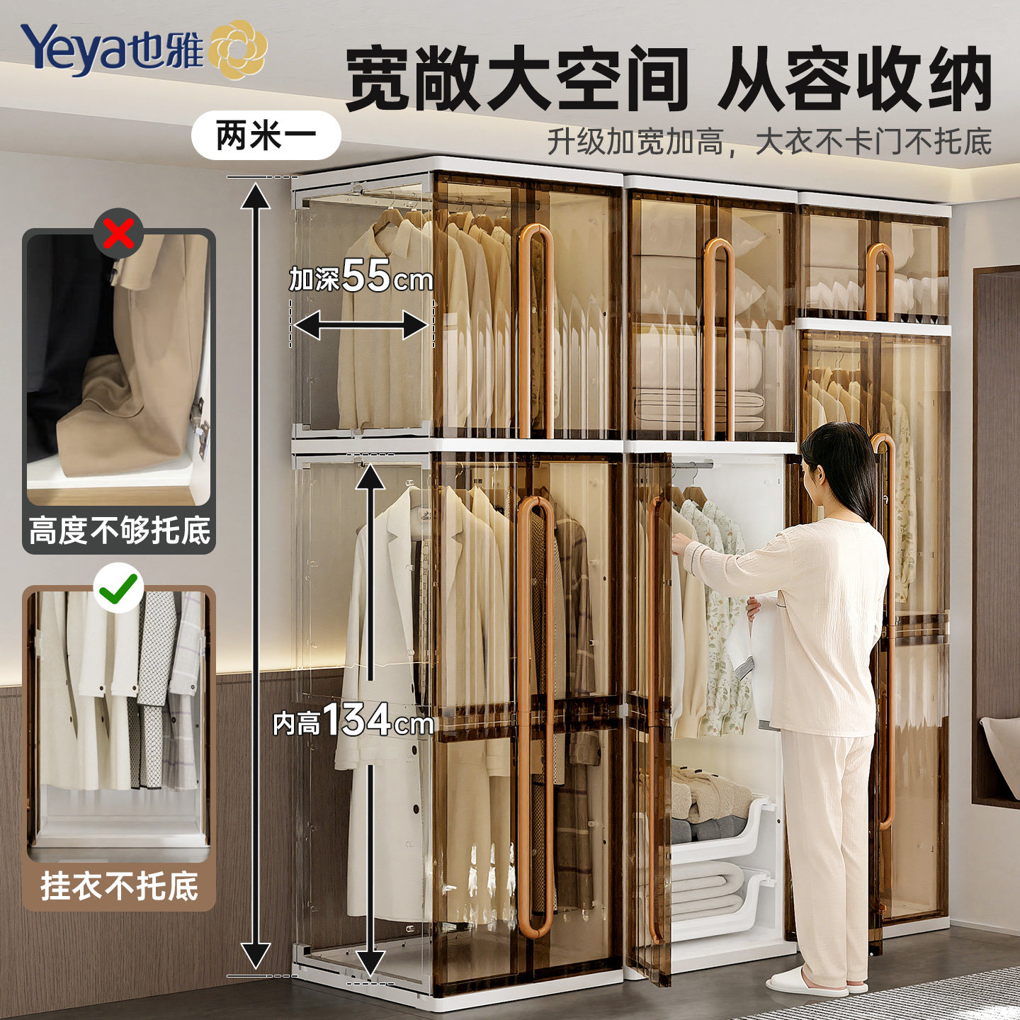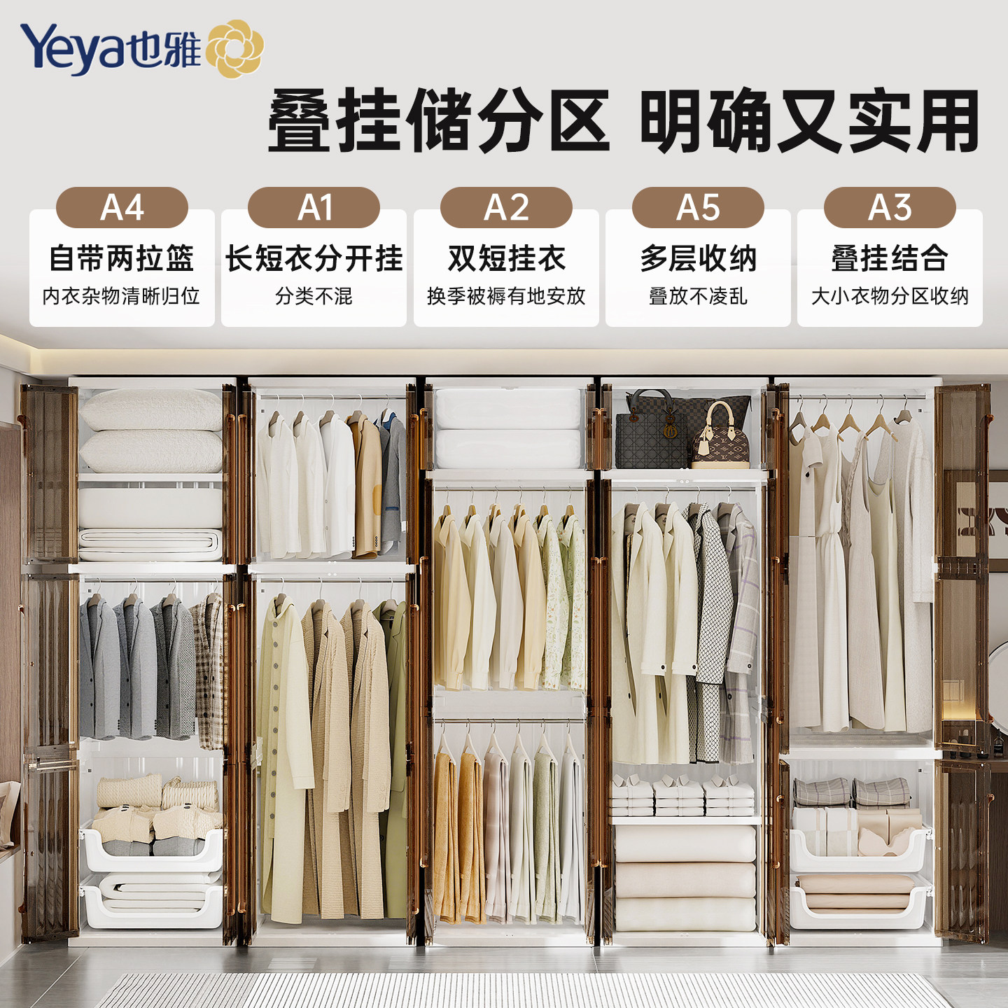 也雅简易衣柜家用卧室挂衣服置物柜塑料衣橱一体式靠墙收纳储物柜