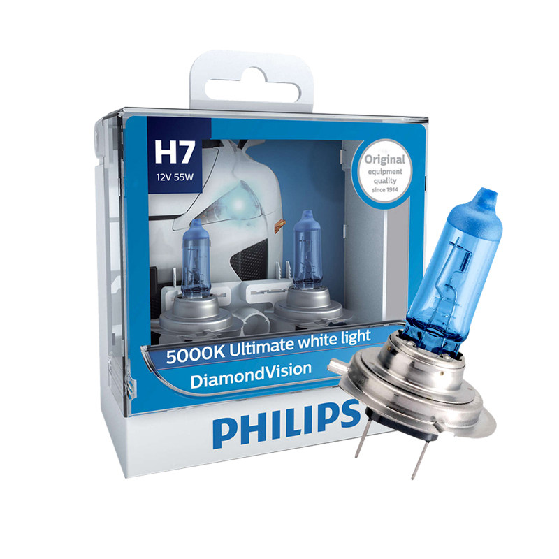 飞利浦汽车卤素灯泡5000K蓝钻远近之光DVH1H4H7白光HB3远近光55瓦