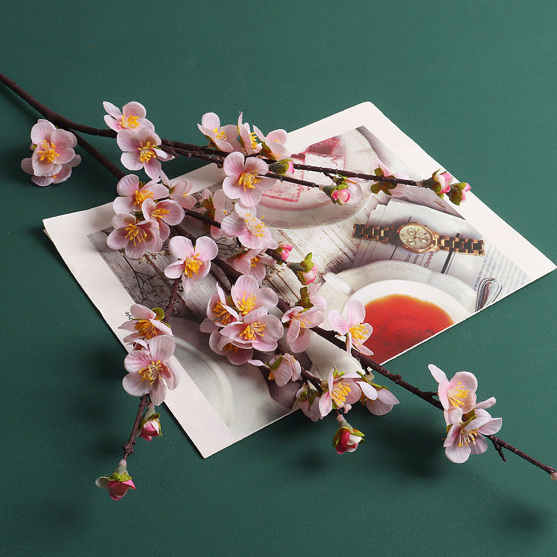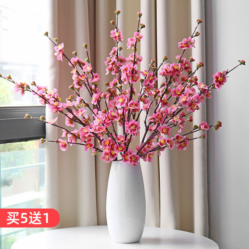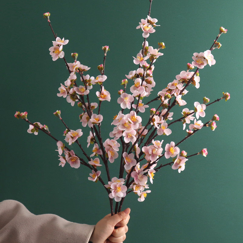 仿真花3D胶布桃花樱花假花手感中式梅花客厅摆设花束中式家居装饰