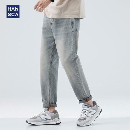 hansca夏季复古牛仔裤男青少年薄款潮牌水洗休闲怀旧直筒锥形长裤