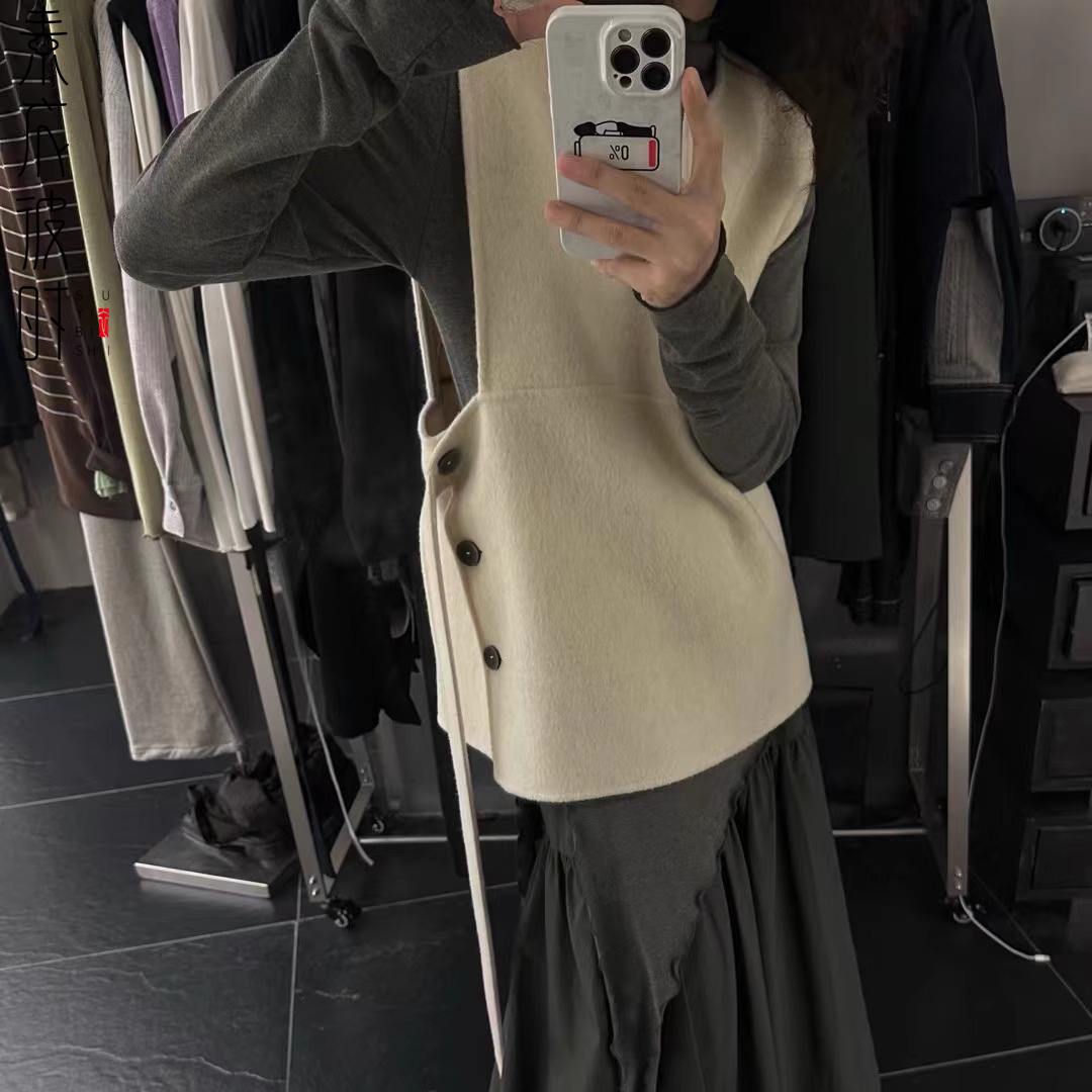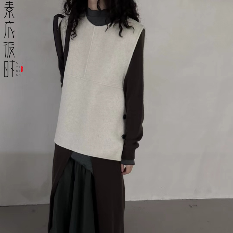 素衣彼时3224秋冬女士双面羊绒马甲纸样日式小众廓形设计背心样板
