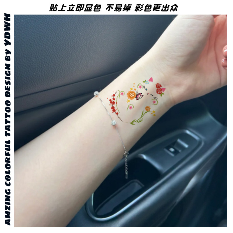 可爱小花猫 纹身贴防水女持久ins风高级感彩绘贴纸小图2024新款