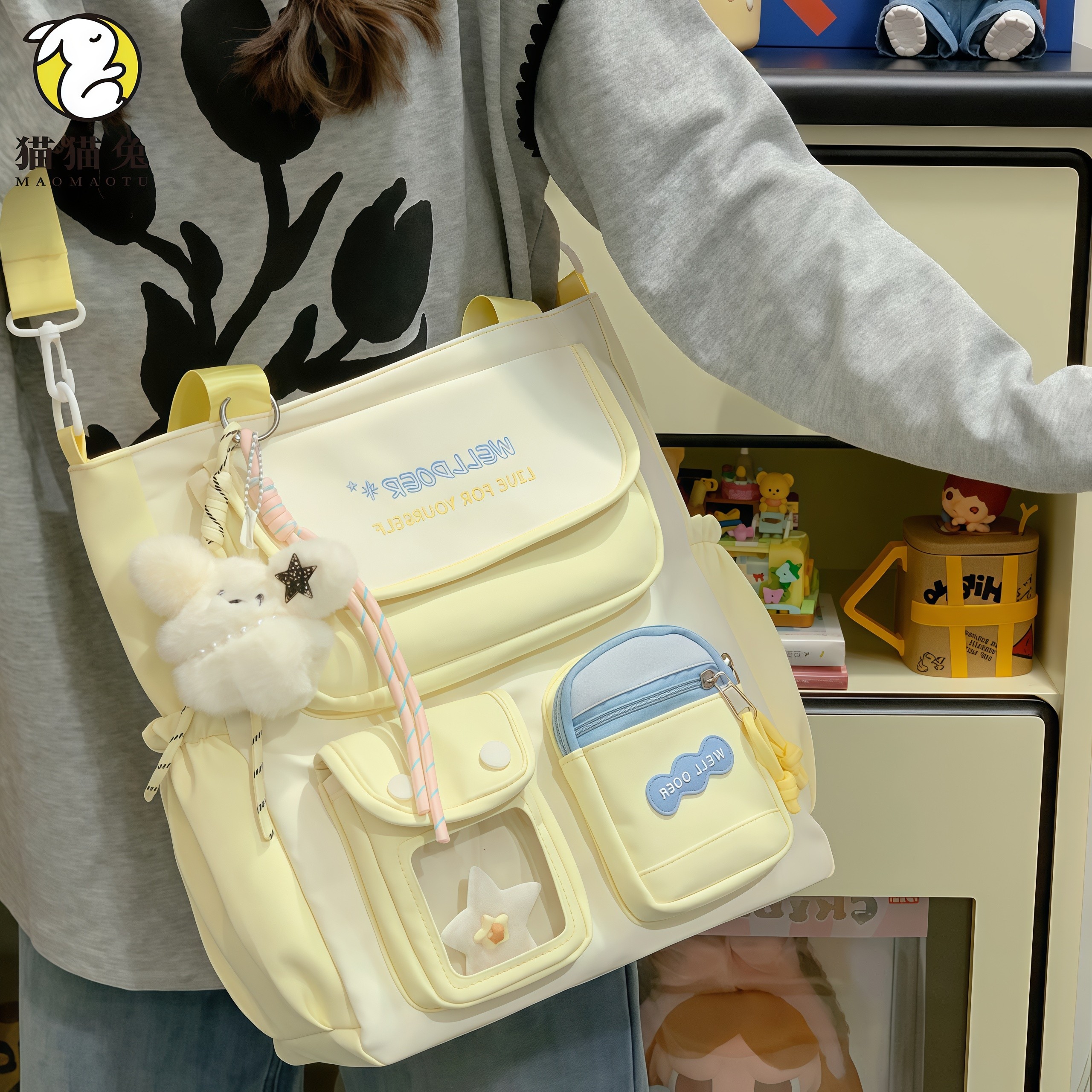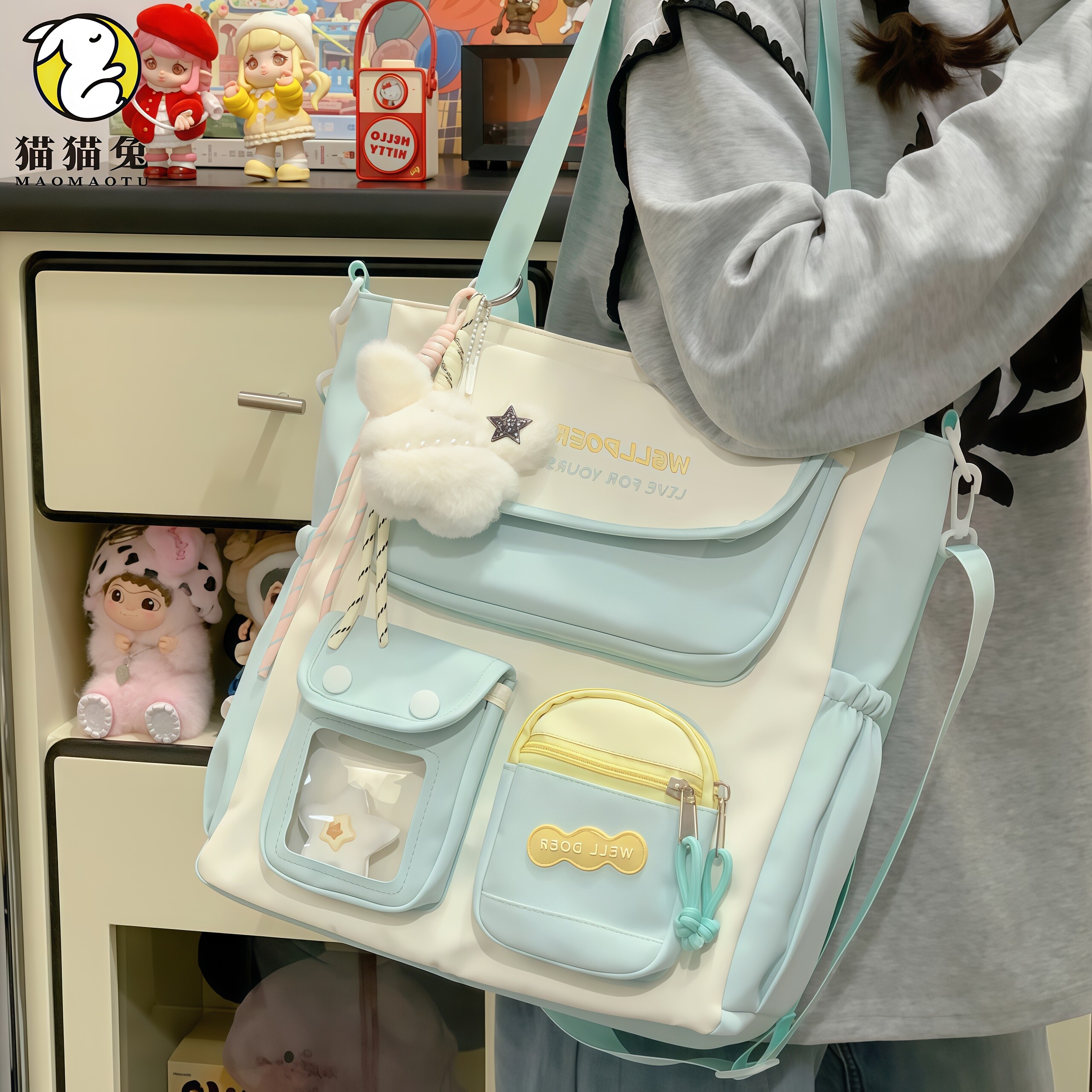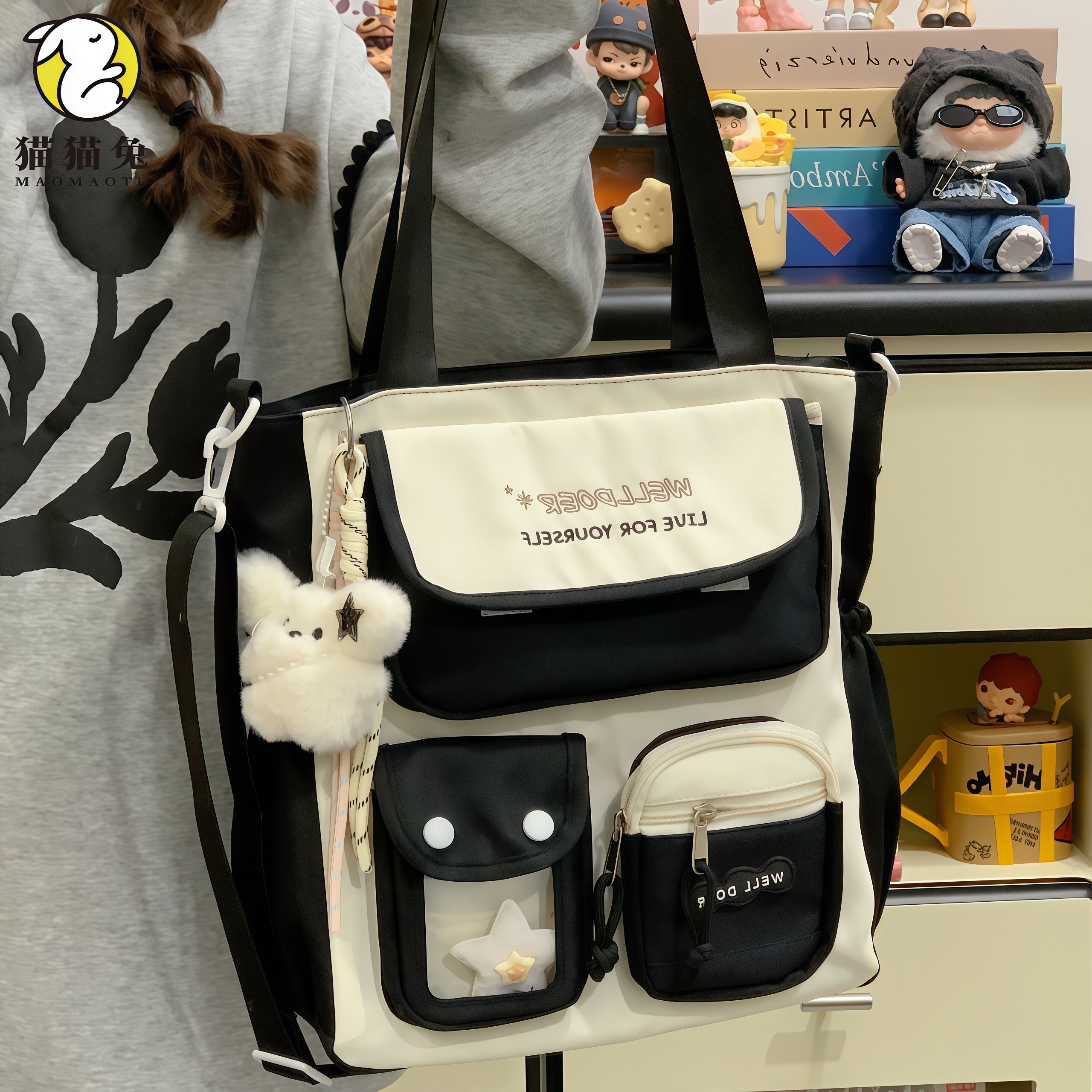 学生手提补习袋ins初中生提包大容量高颜值单肩斜挎包书包挎包女