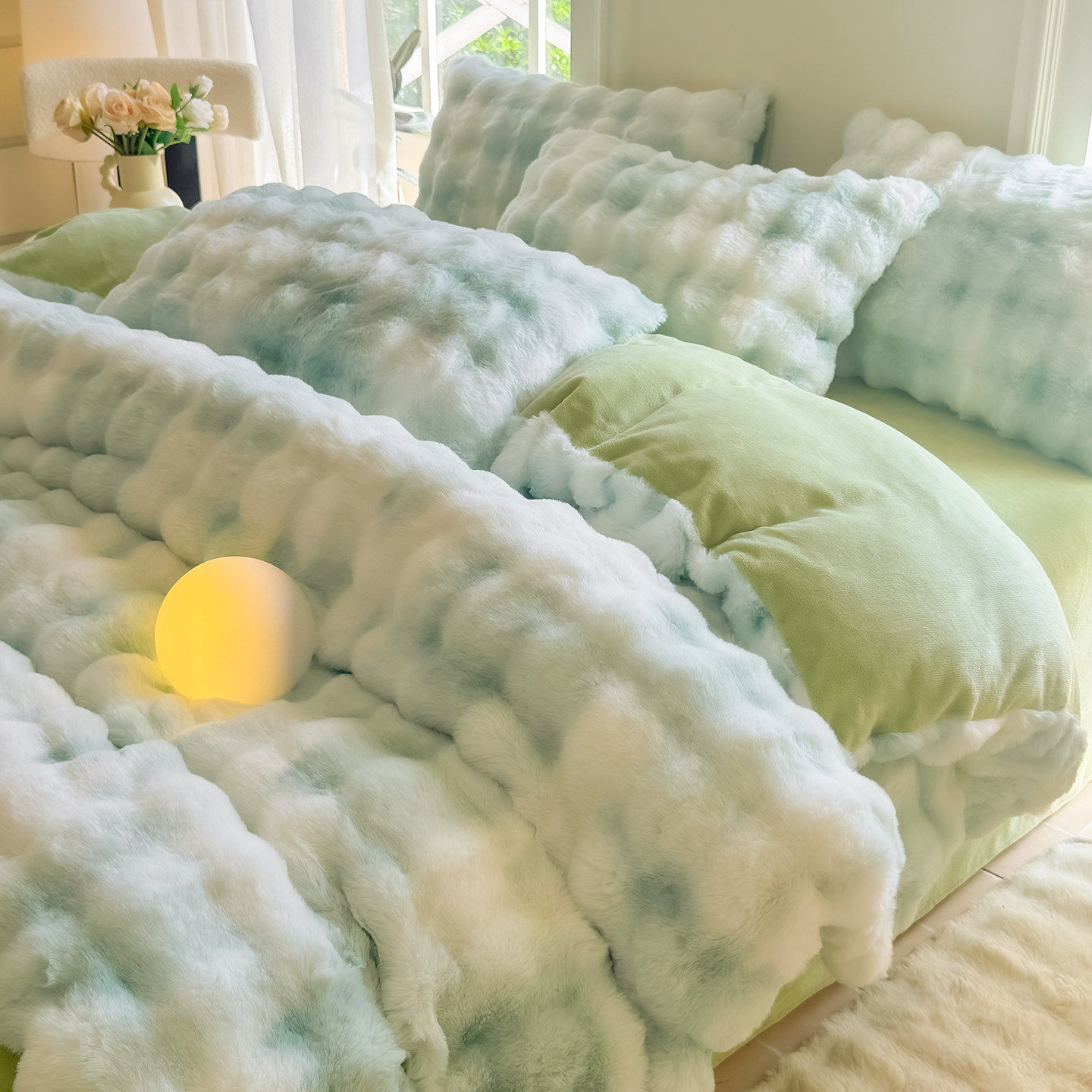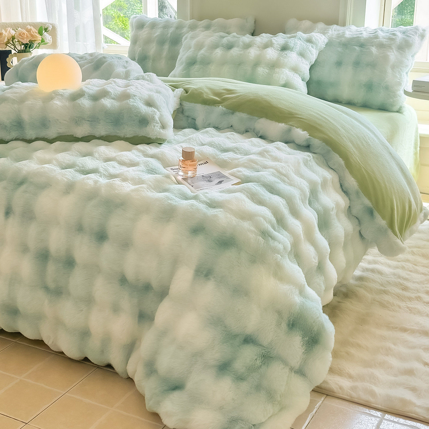 全棉纯棉冬季兔毛绒四件套加厚牛奶绒珊瑚绒被套加绒床单人学生宿