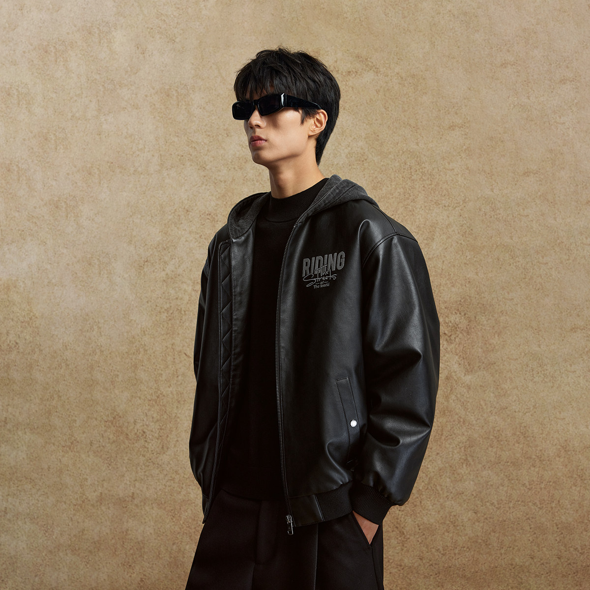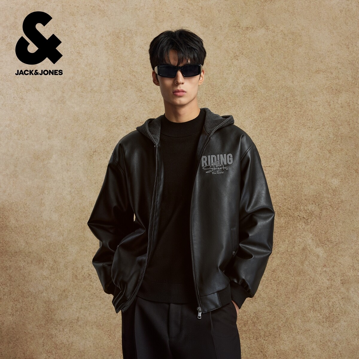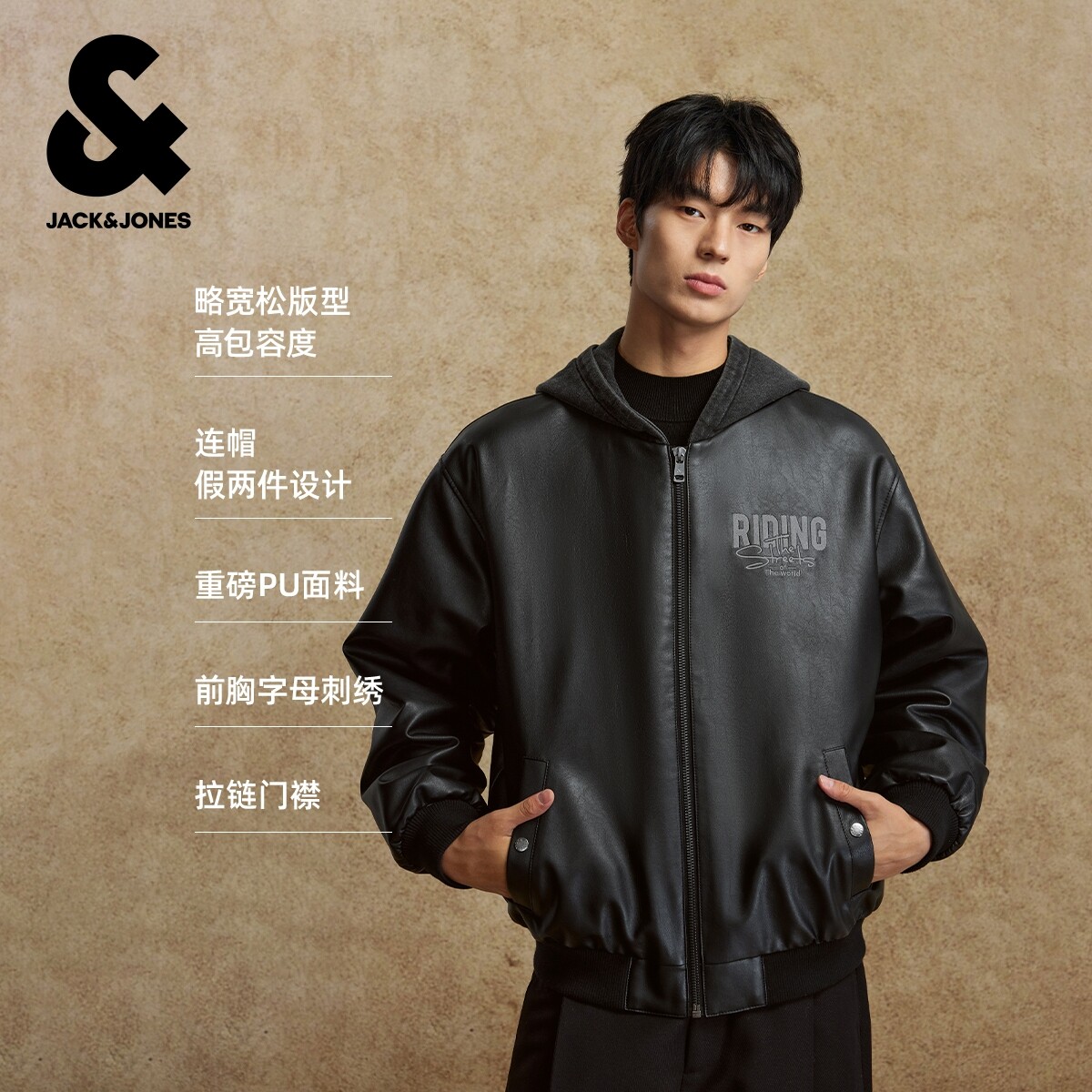 杰克琼斯奥特莱斯男生2025年冬季新款棉衣连帽皮衣棉袄美式上衣