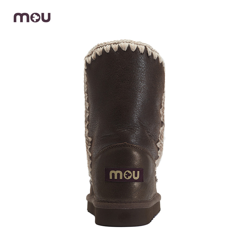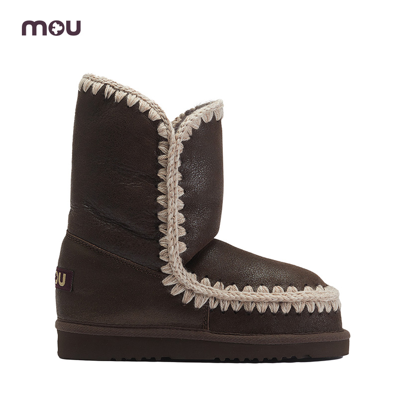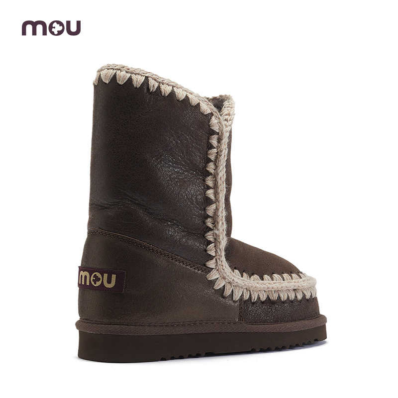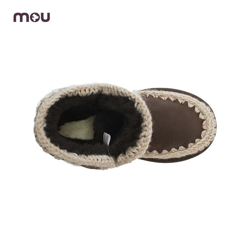 mou冬款ESKIMO 24美拉德手工钩编装饰羊皮毛一体中筒雪地靴