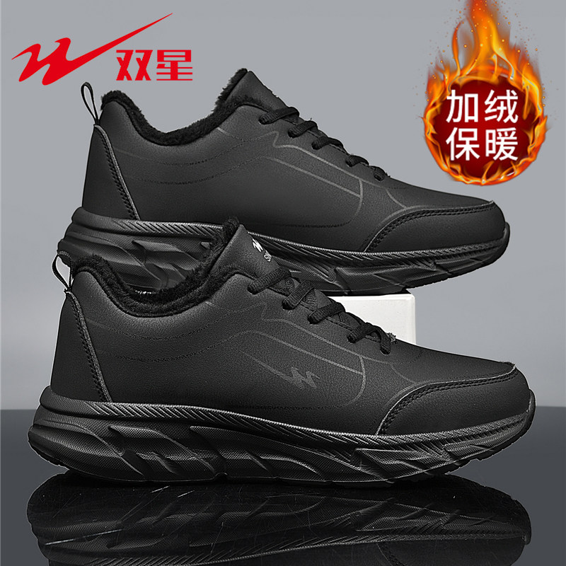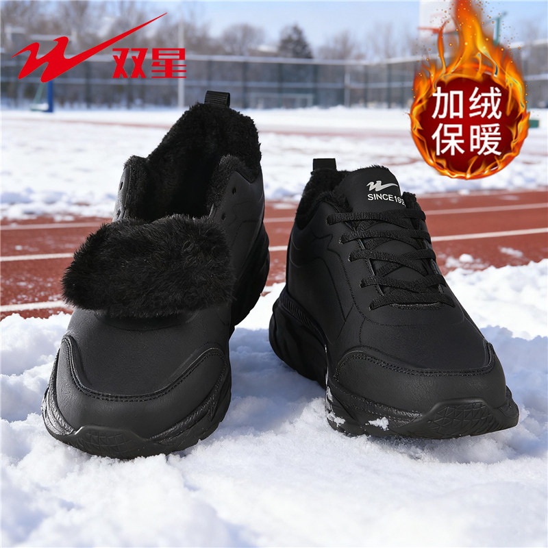 双星冬季棉鞋男款2025新款加绒保暖运动鞋皮面防水男士二棉跑步鞋