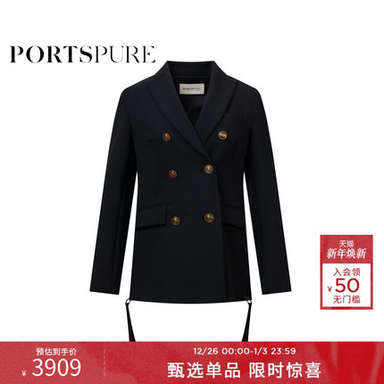 宝姿PORTSPURE女装黑色英伦优雅正肩修身短外套西装RT7J013KWQ026