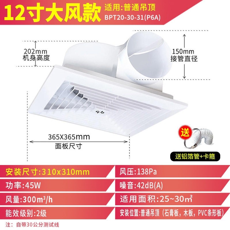 金羚卫生间排风扇吸顶式排气扇石大风量款膏板吊顶换气扇强力静音