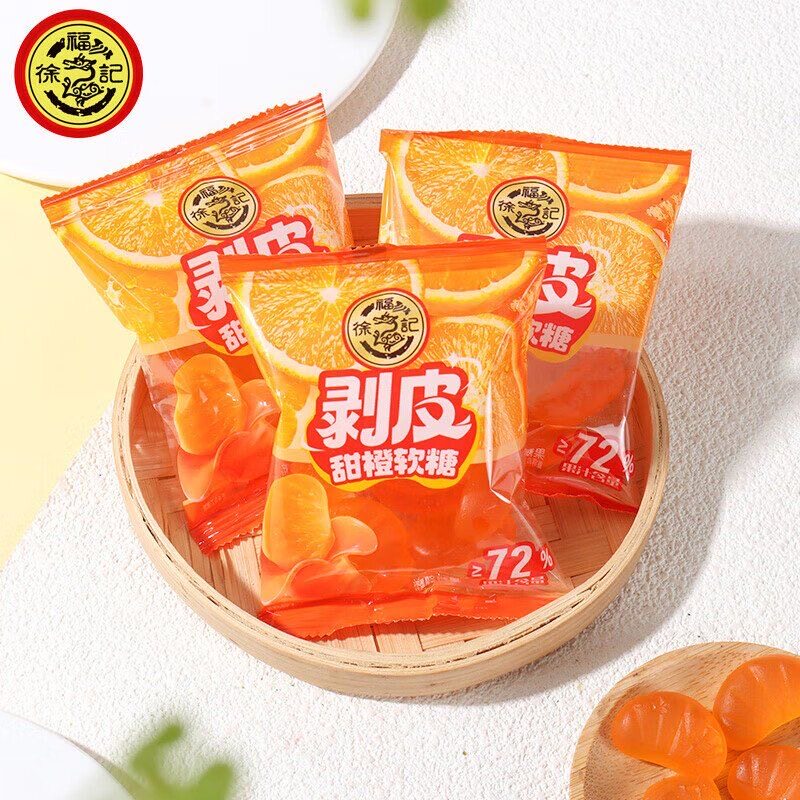徐福记剥皮果汁软糖礼桶300g青提芒果甜橙果味糖果零食年货小吃