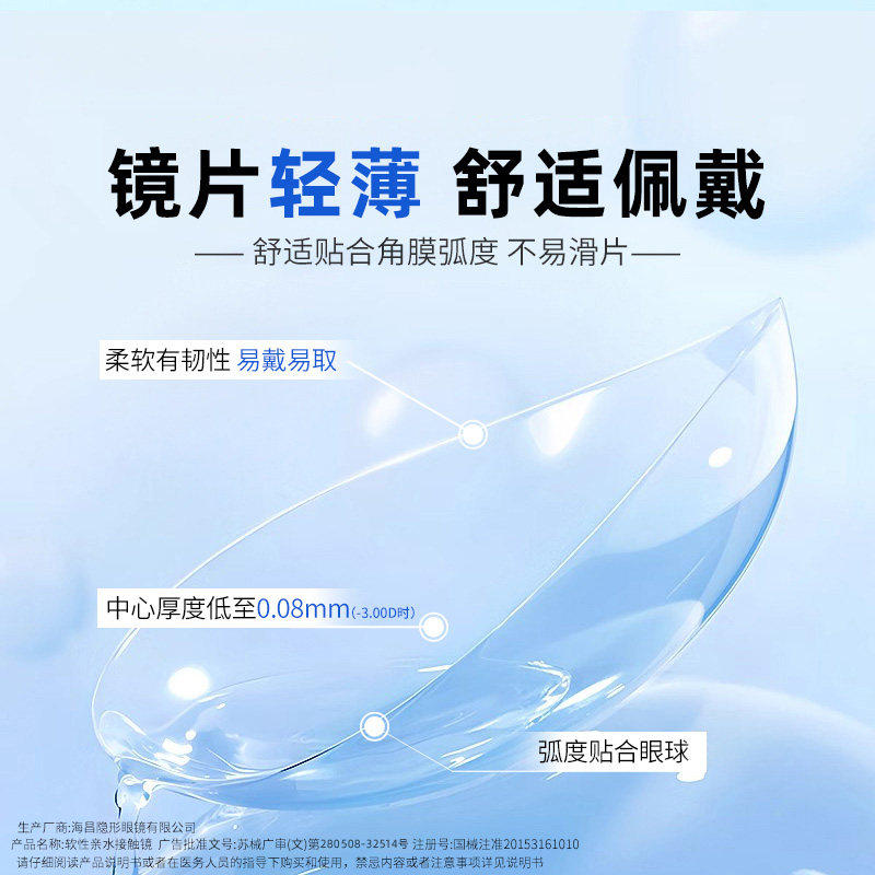 海俪恩全视半年抛隐形眼镜2片近视透明隐性眼镜官方正品假一赔十