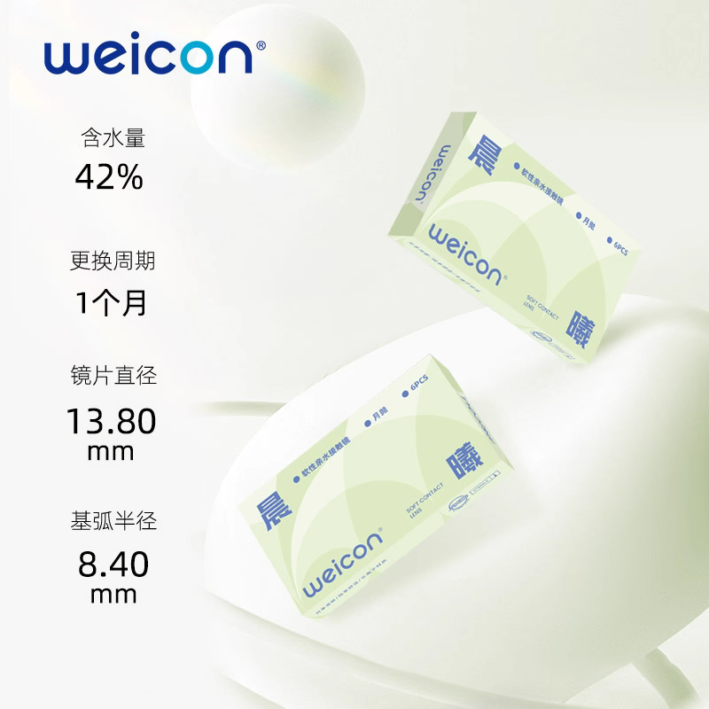 卫康晨曦月抛隐形眼镜近视眼镜水凝胶水润透氧高清透明片6片