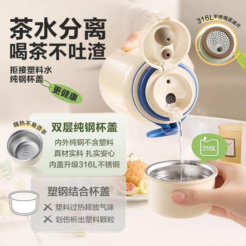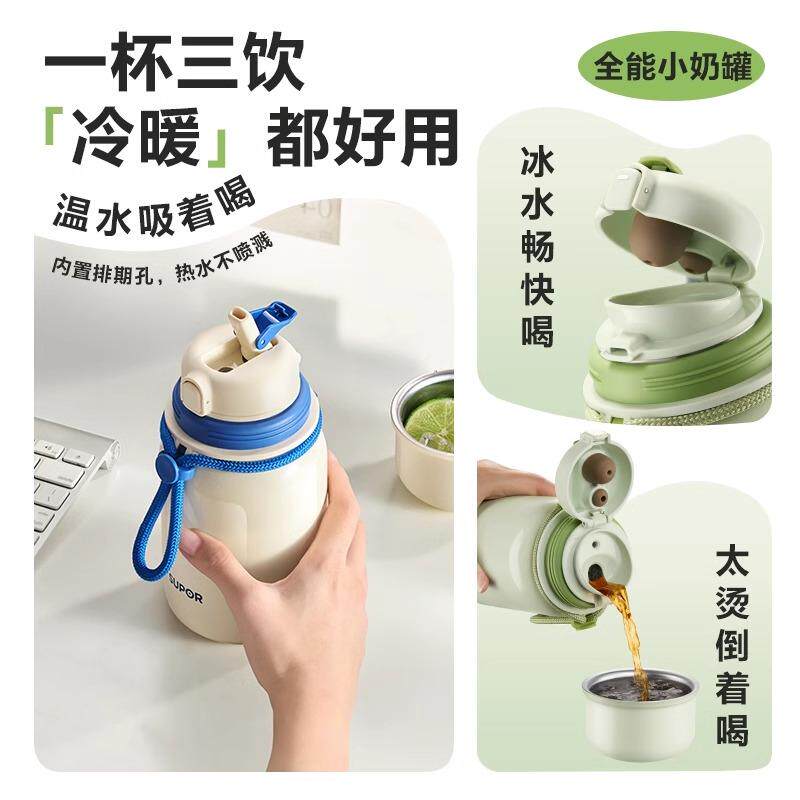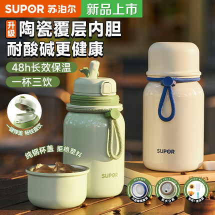 苏泊尔保温杯女生高颜值大容量咖啡儿童吸管水杯陶瓷学生泡茶杯子