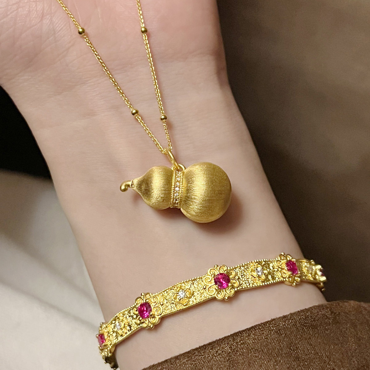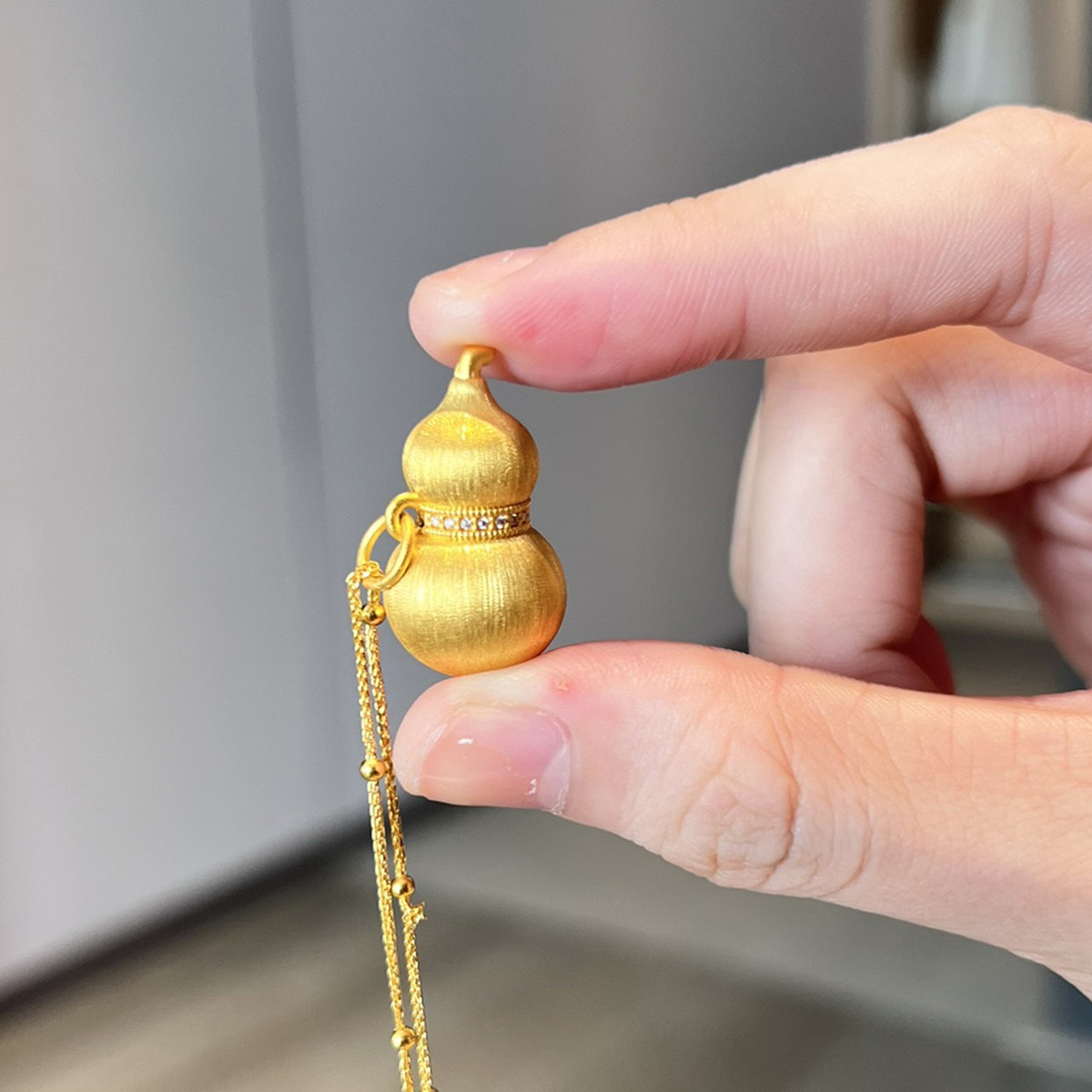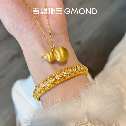 吉盟珠宝5D点钻黄金吊坠女款拉丝葫芦999足金项链坠吉祥福禄显大