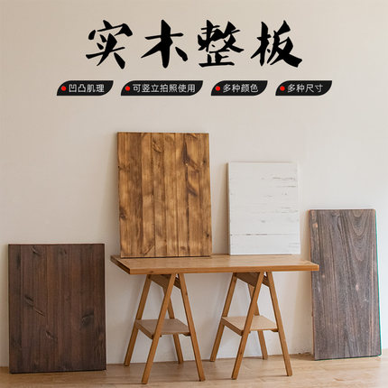 整板实木板白色复古做旧木板黑色无缝板子拍照道具美食摄影背景板