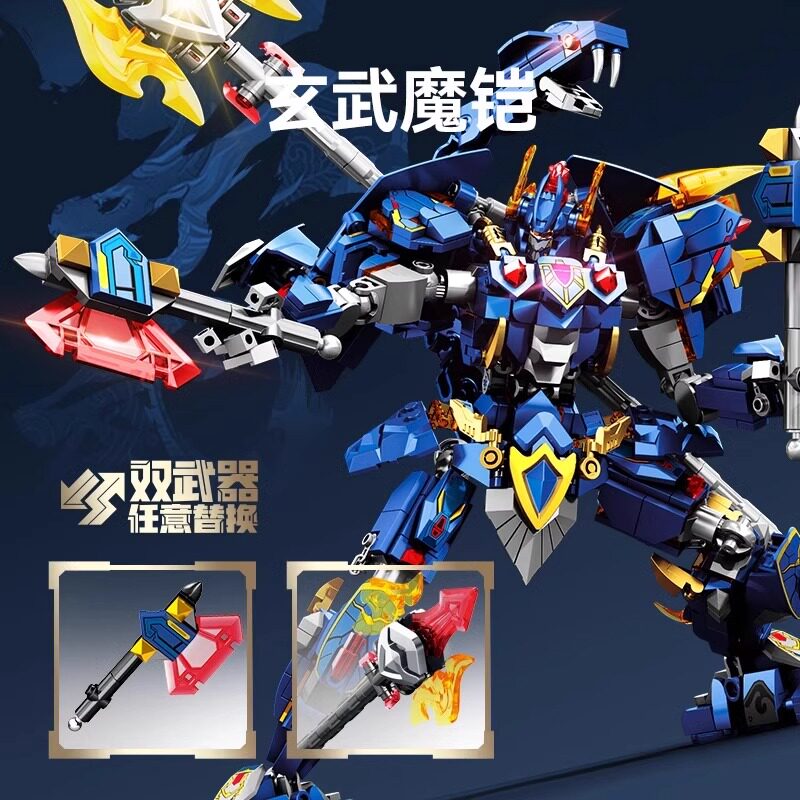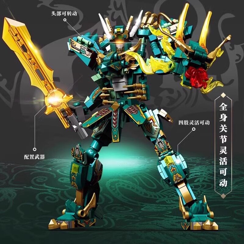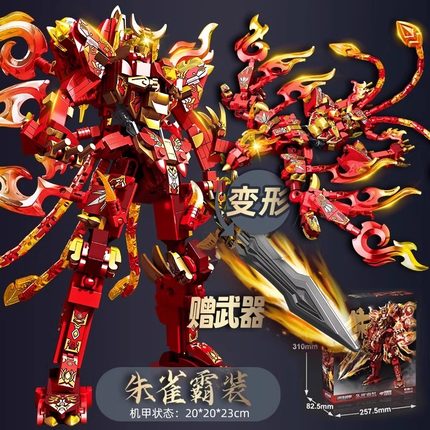 朱雀青龙机甲中国积木变形机器人小颗粒拼装益智儿童男孩玩具