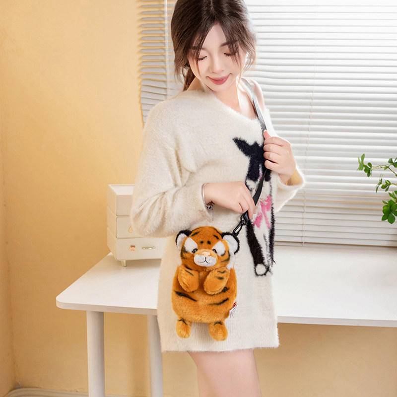 绒之岛仿真老虎动物斜挎包可爱熊猫包毛绒背包小老虎儿童毛绒玩具