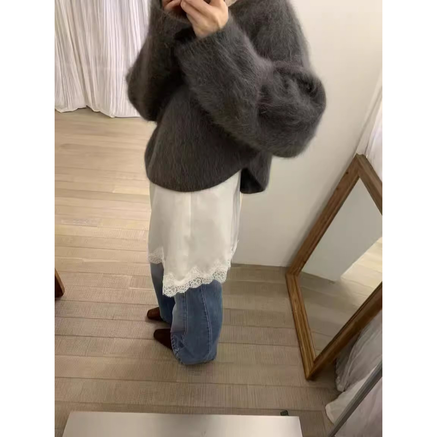 韩系秋冬季氛围感蕾丝花边中长吊带背心叠穿连衣裙