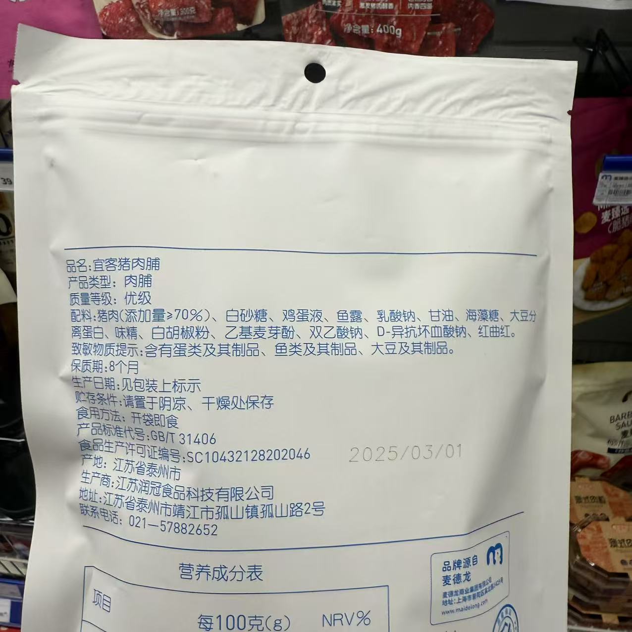 麦德龙代购 宜客猪肉脯290g鲜香咸甜嚼劲十足肉质醇香休闲小零食