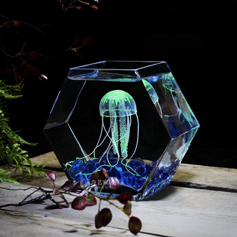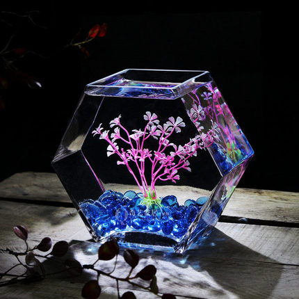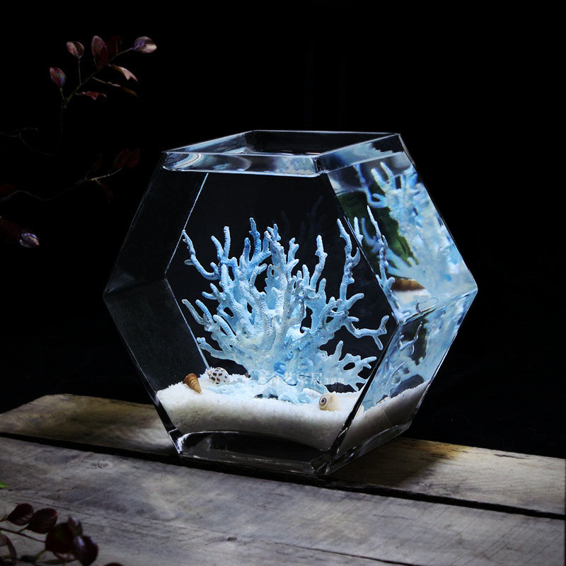 奇艺家居创意多边形玻璃鱼缸大号高透亮斗鱼缸桌面小鱼缸水培花瓶