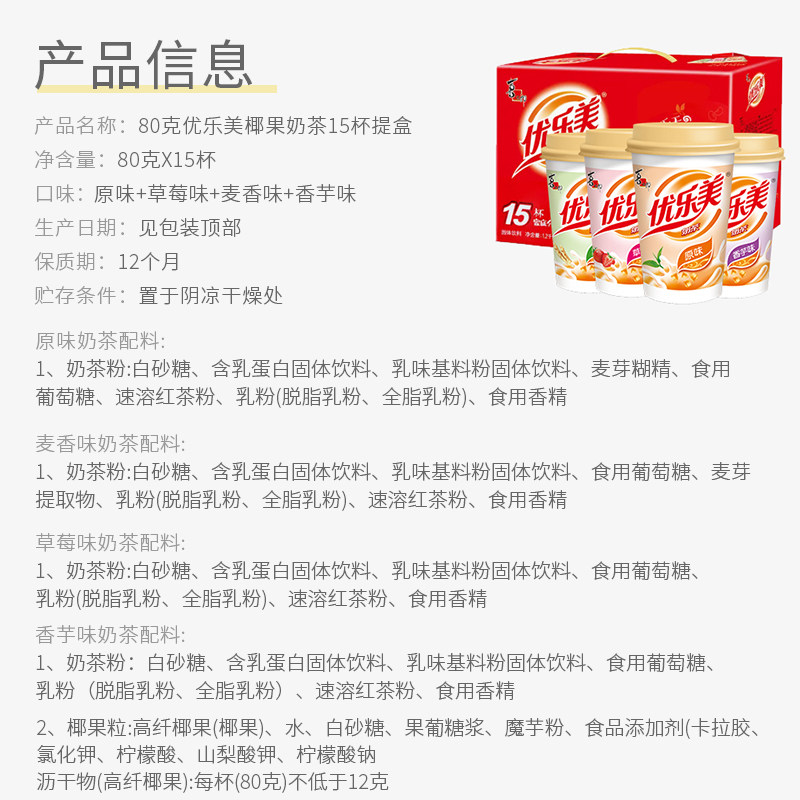 优乐美多口味椰果奶茶80g*15杯礼盒装速溶早餐饮品节庆冲泡热饮料