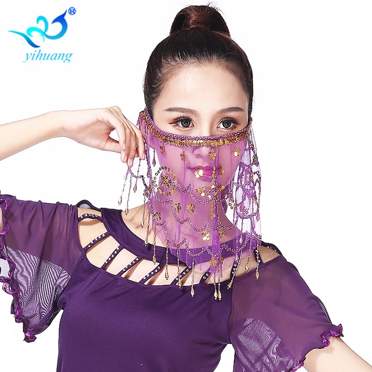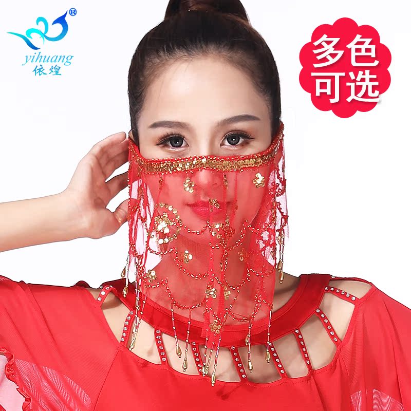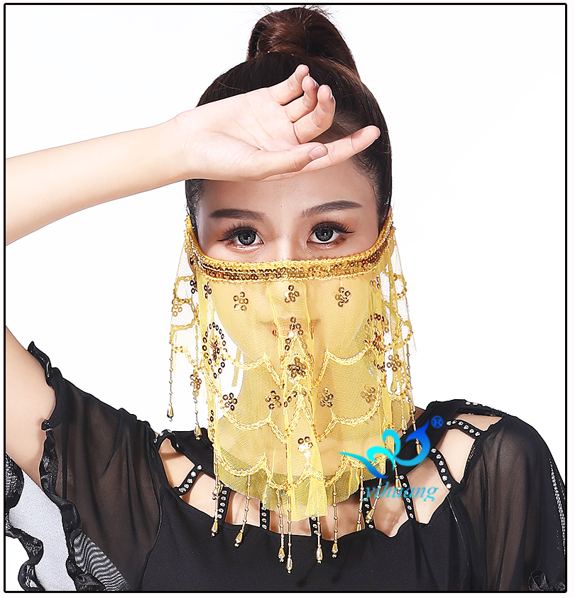 新款肚皮舞面纱印度舞蹈服装配饰蒙面具纱巾道具古装仙女遮脸