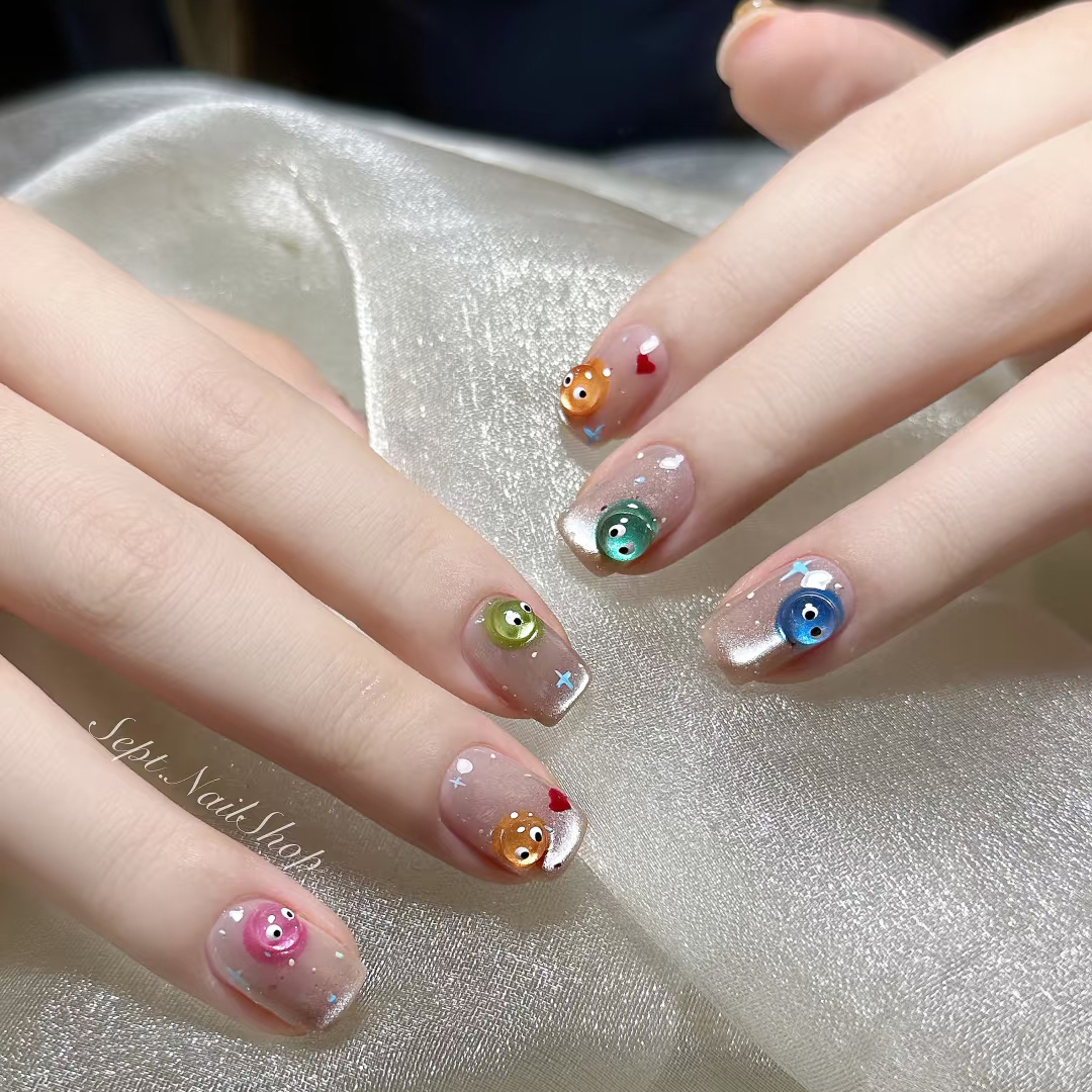 人间萌物多巴胺小怪兽纯手工穿戴甲可爱卡通美甲贴片成品可拆卸