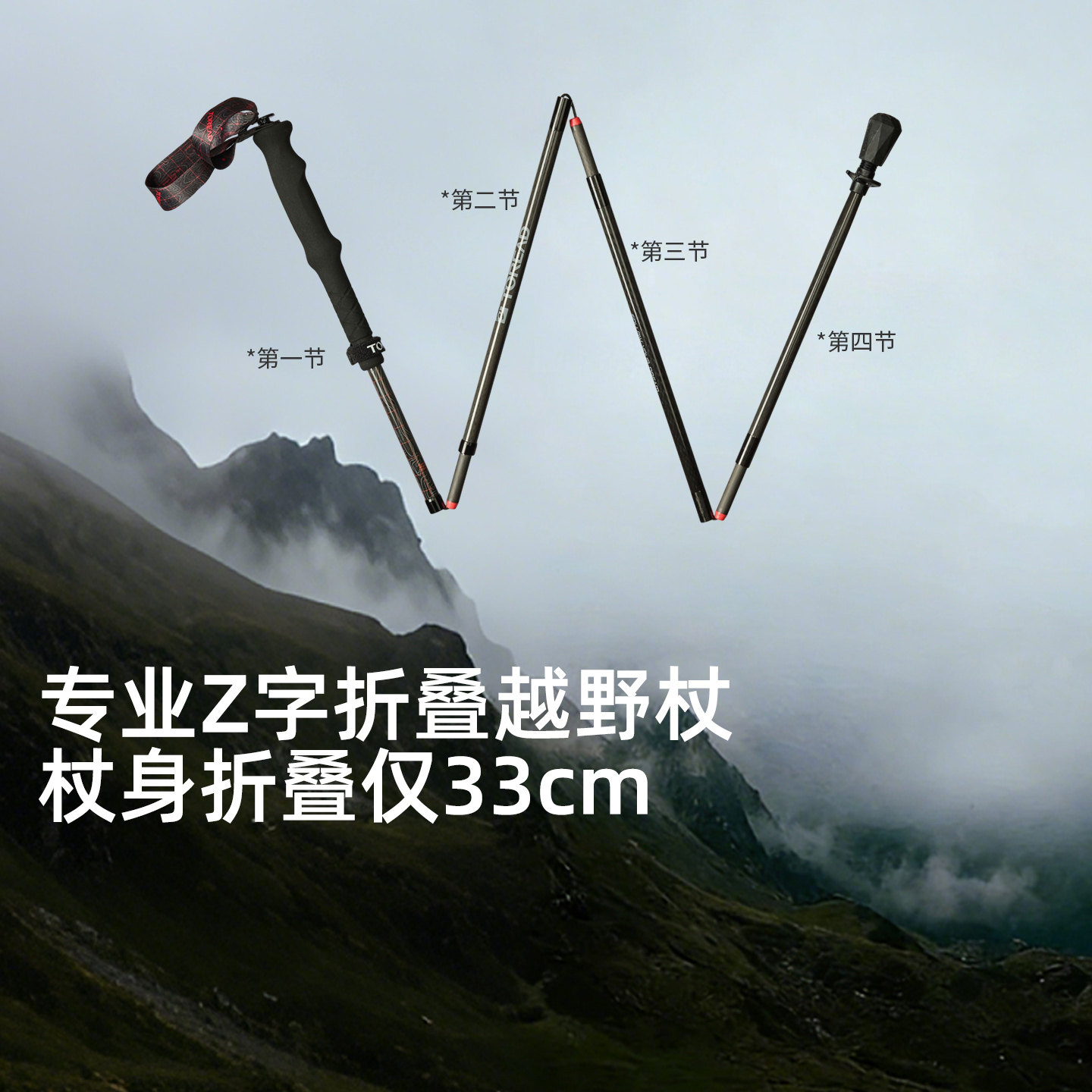探路者超轻碳纤维四节折叠登山杖户外徒步专业越野跑登山爬山手杖