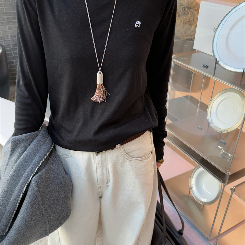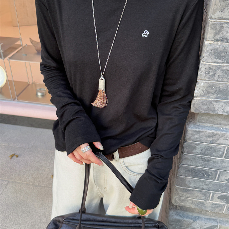 欧洲站2025秋季新款女装胸前刺绣小羊白色长袖T恤女打底衫内搭