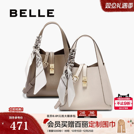 百丽包包女新款真皮通勤菜篮子送妈妈礼物手提手拎水桶包BL828BX5