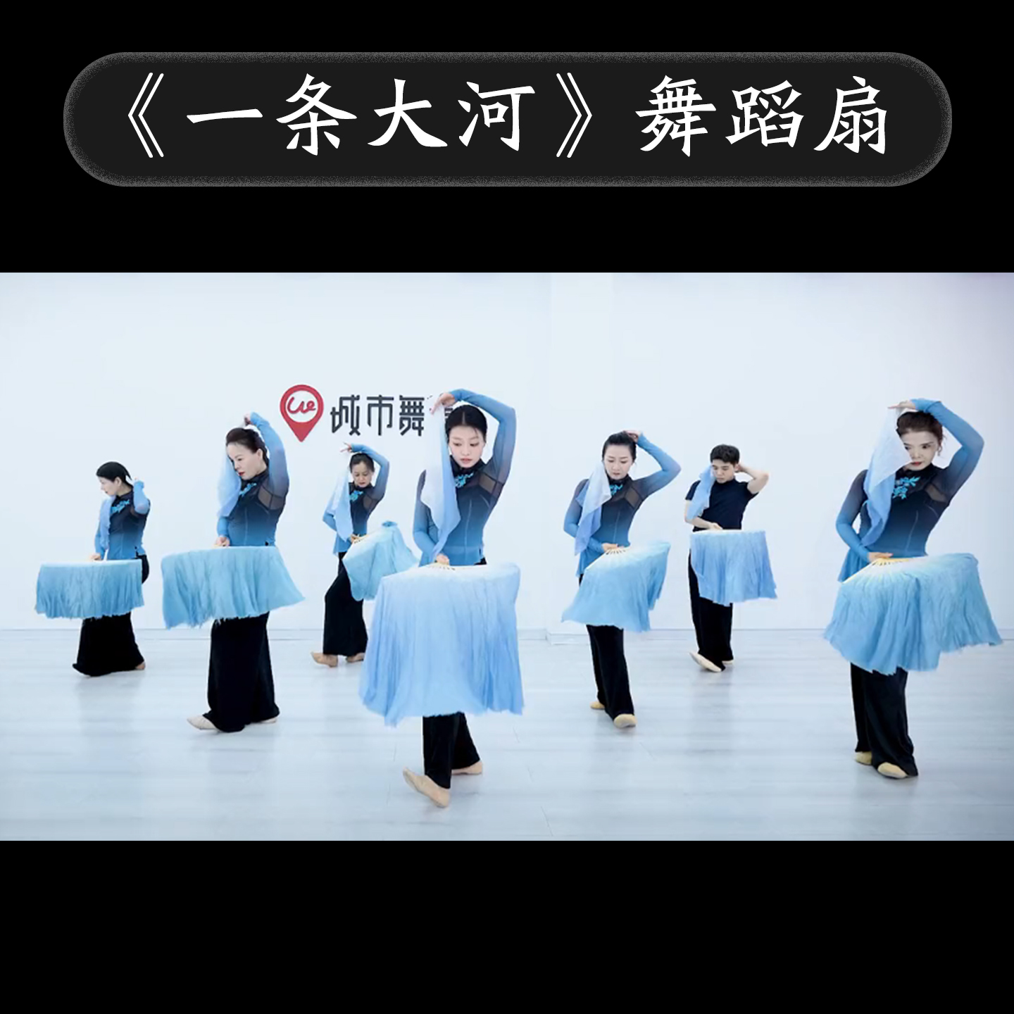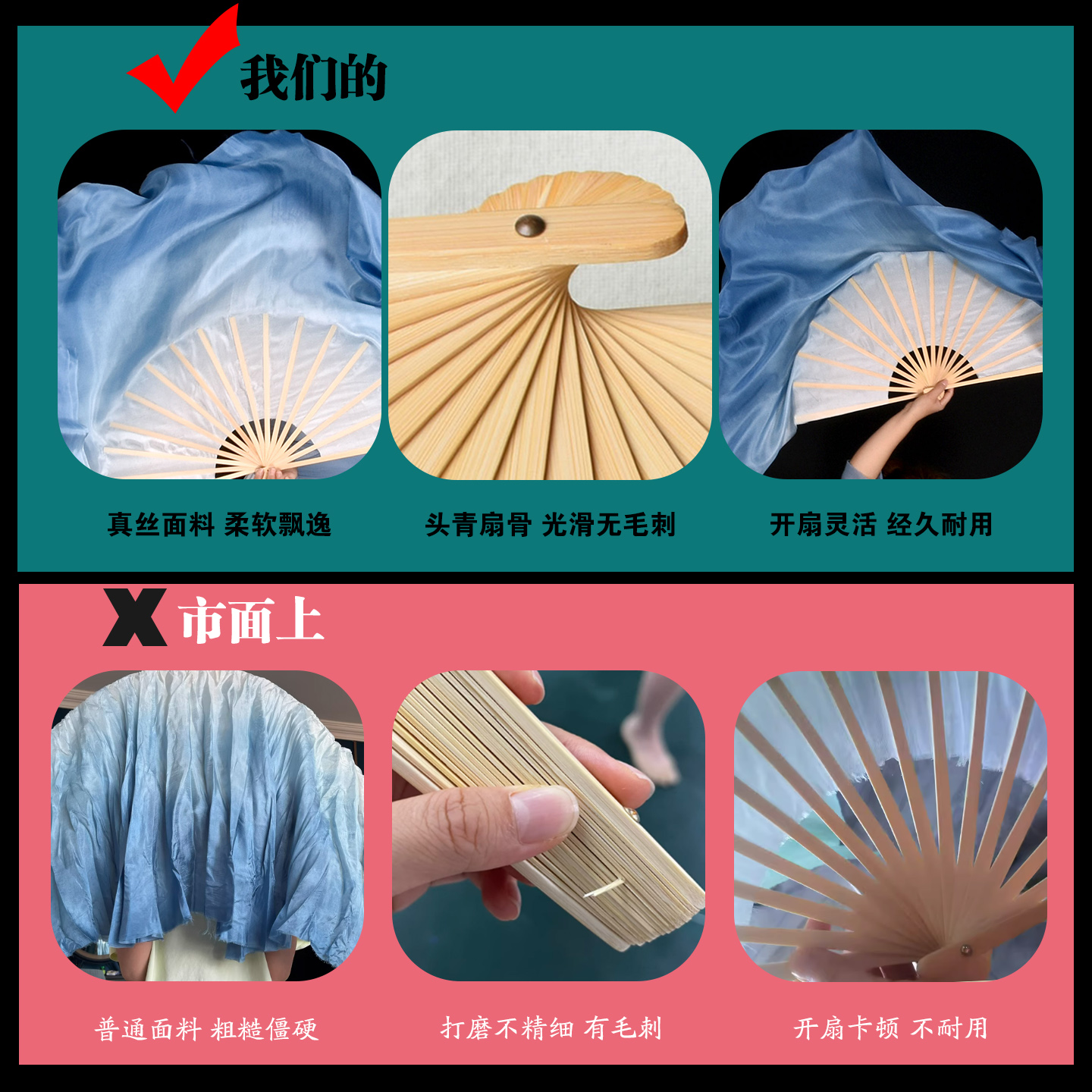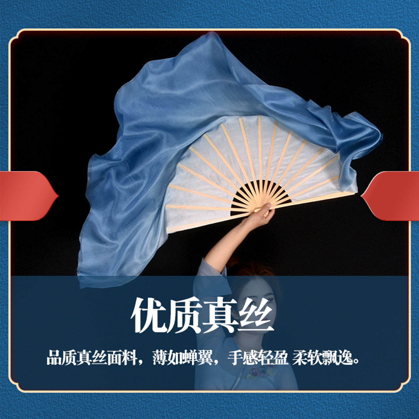 盼归真丝舞蹈扇子丝巾考级专用蓝色渐变中国舞古典舞胶州秧歌绸扇