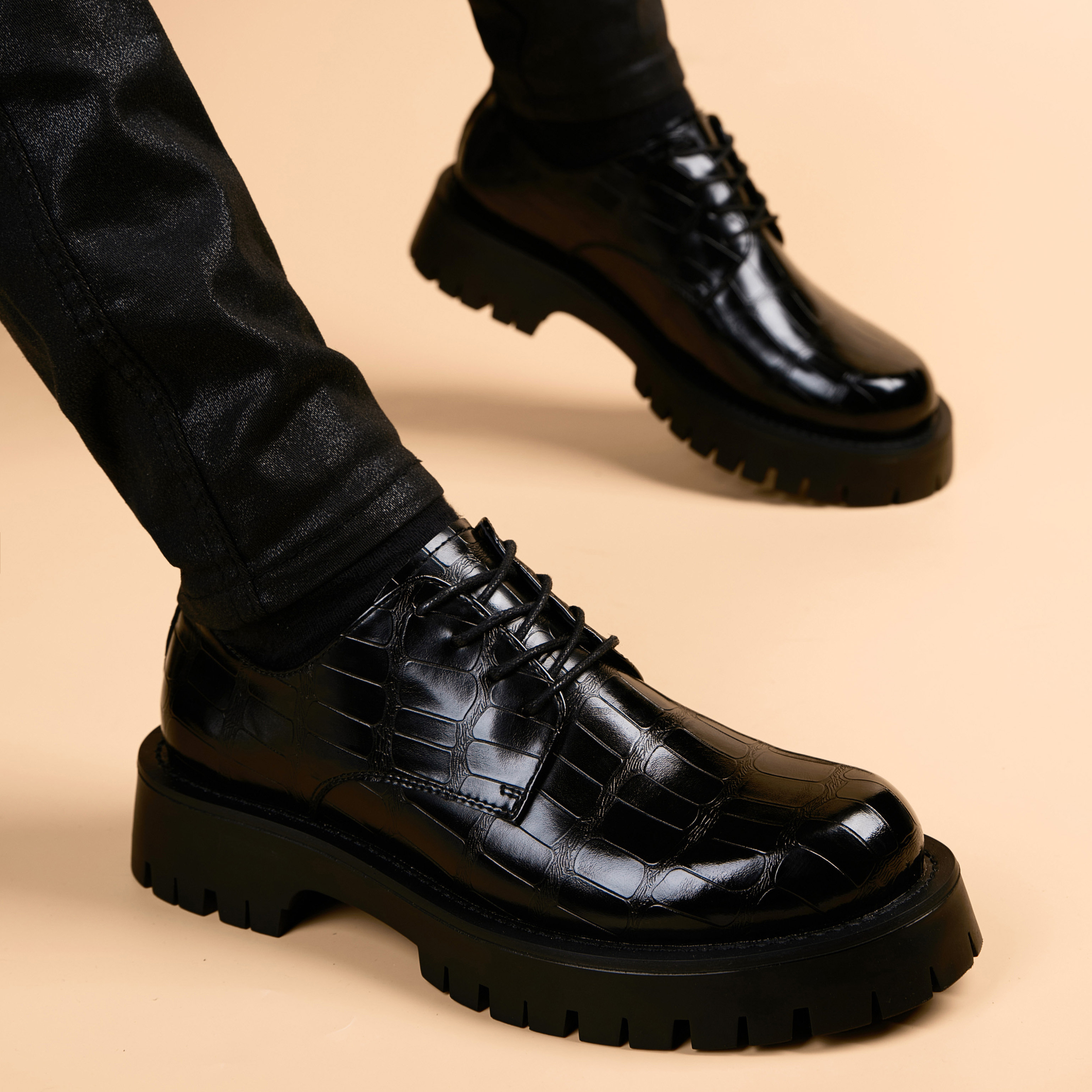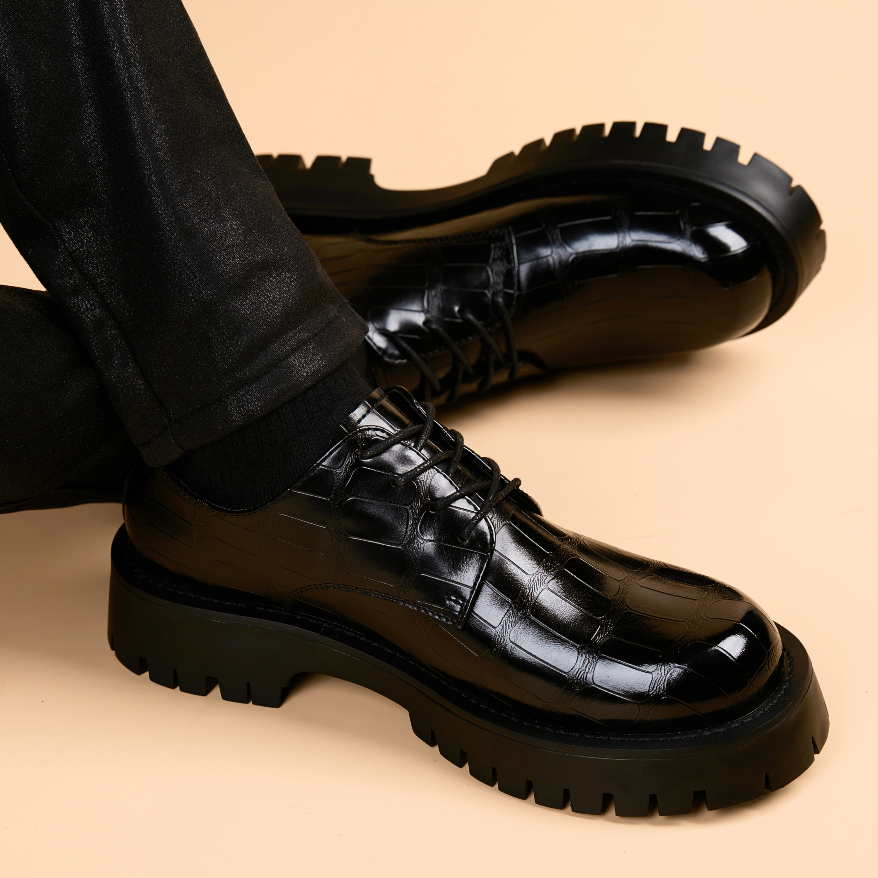 皮鞋男厚底英伦风潮流商务正装真皮男鞋子内增高休闲男士皮鞋大头