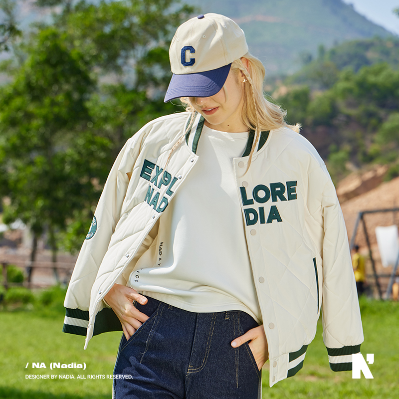N+a纳迪亚23年秋冬新款棒球服棉服男女情侣同款户外休闲复古外套