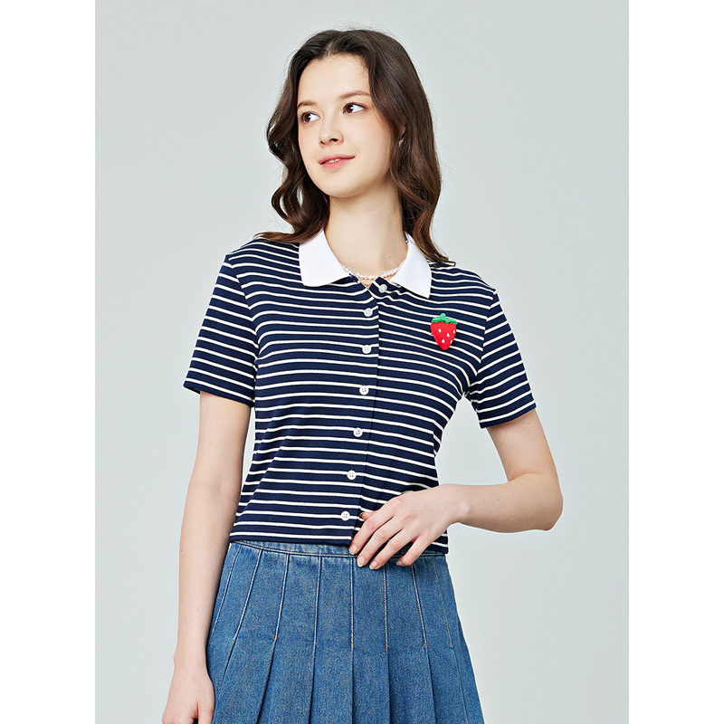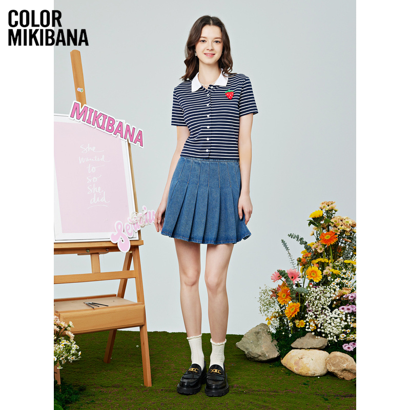 Mikibana撞色POLO领条纹宽松休闲短款T恤上衣春夏女J41TT3100